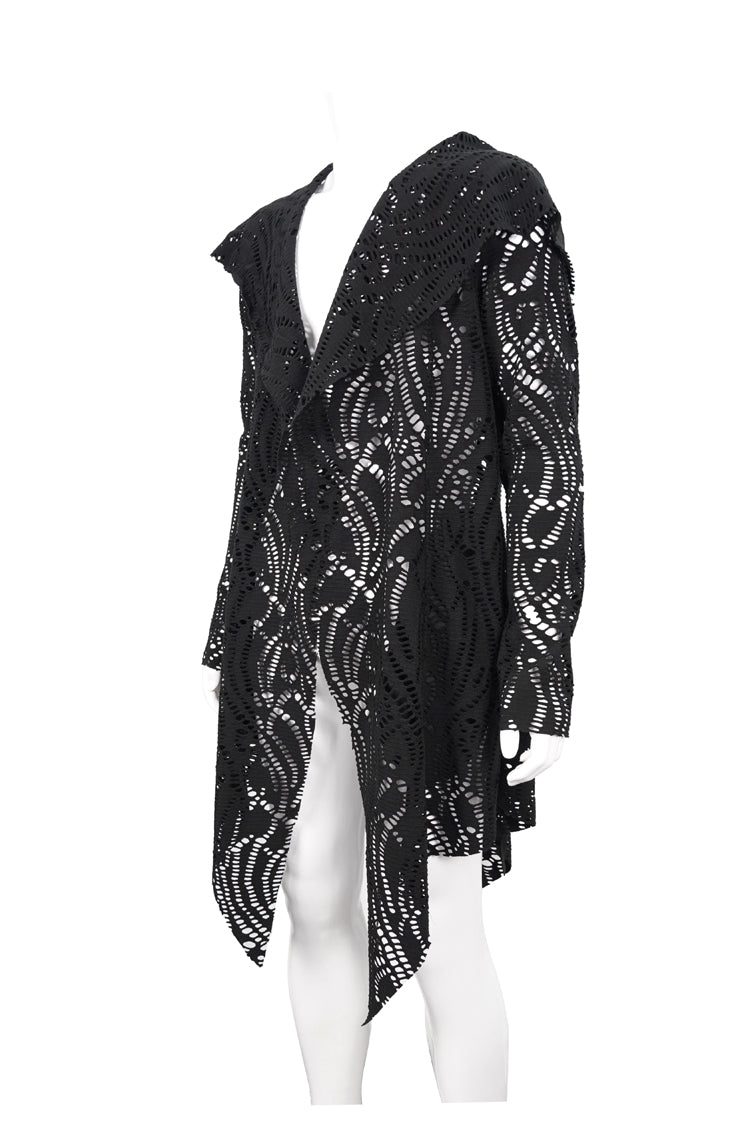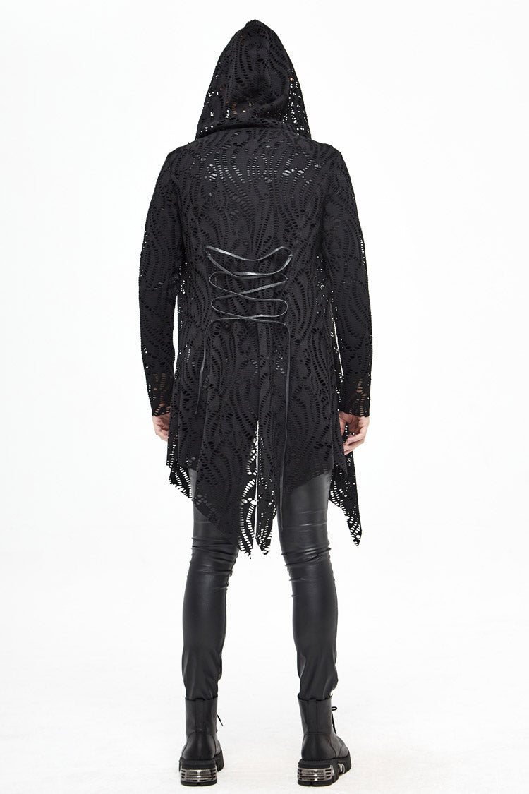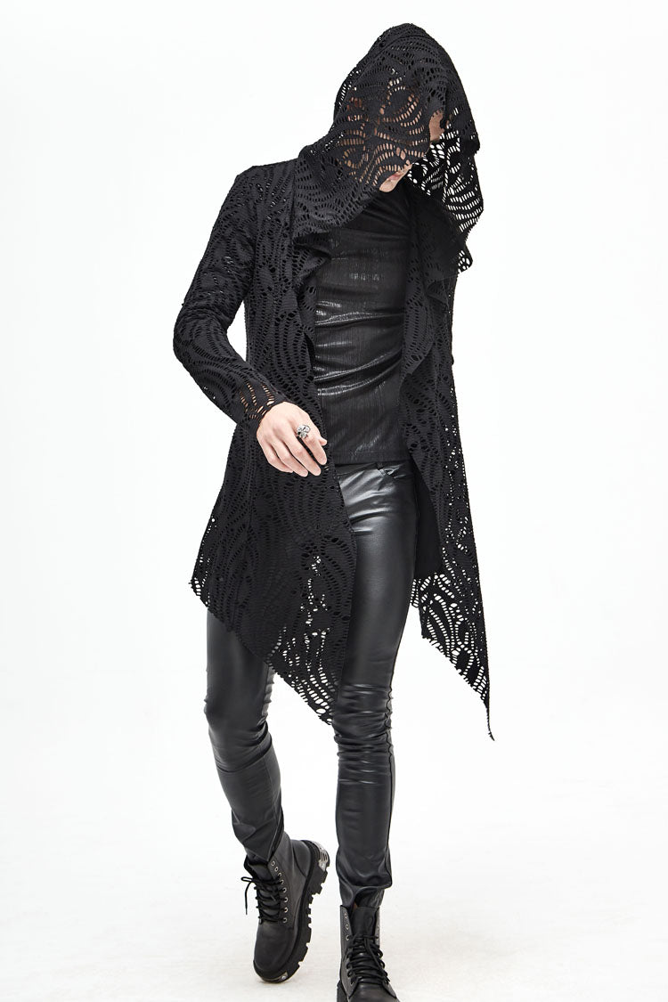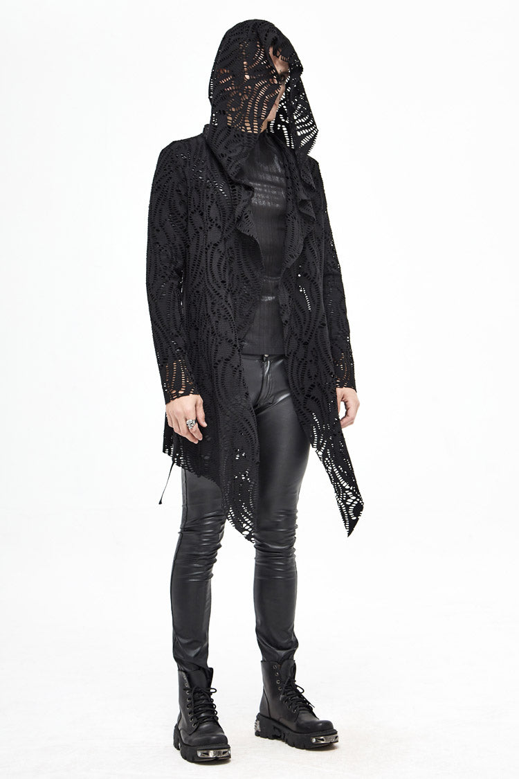 The main fabric is made of thin cloth with all holes, with a hooded version and a sharp hem. There are pockets on the side.