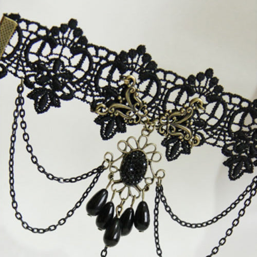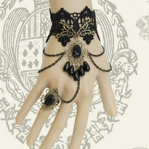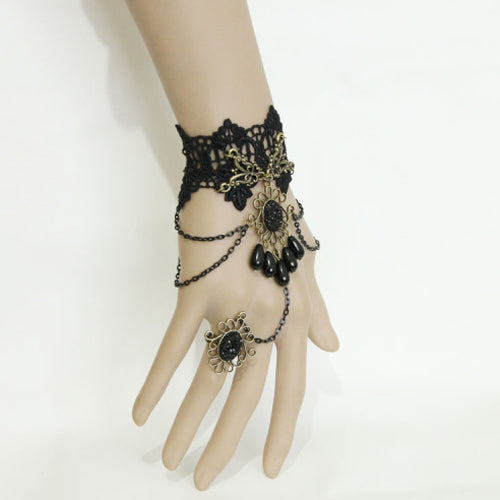 Retro Black Lace Fashion Festival Gothic Palace With Ring Bracelet