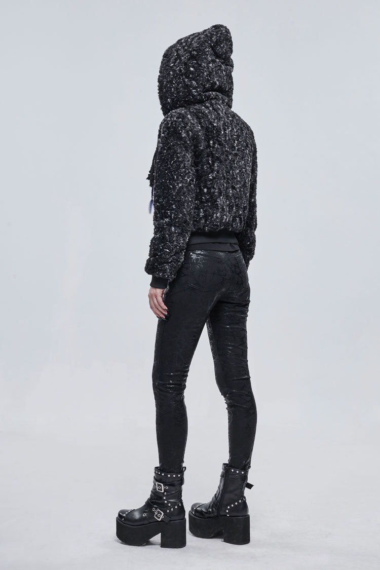The main material is made of two-color wool, with D-shaped buckles on the leather shoulders and drawstring decoration.