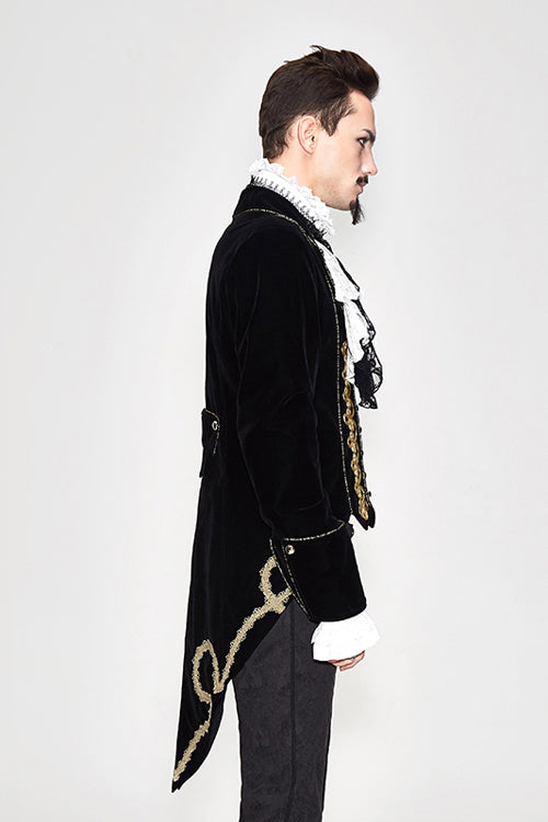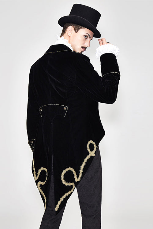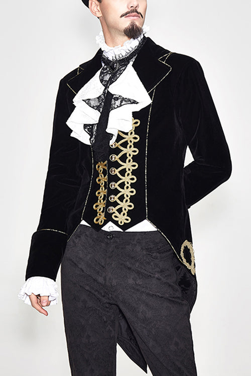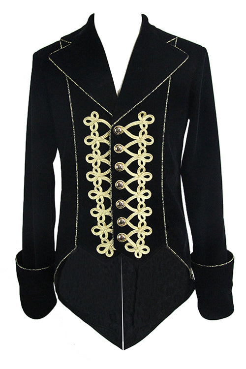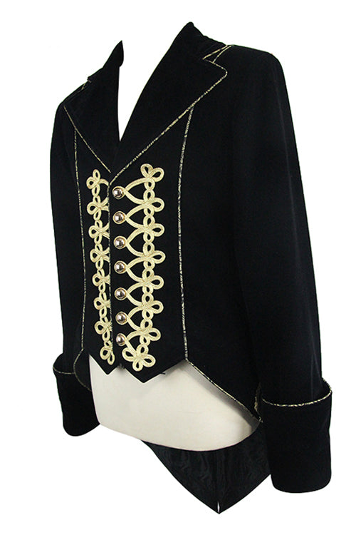 There are golden disc flowers decorations on the center front, collar sew a bud echo golden disc flowers.The back was stitched with the gothic flower.
