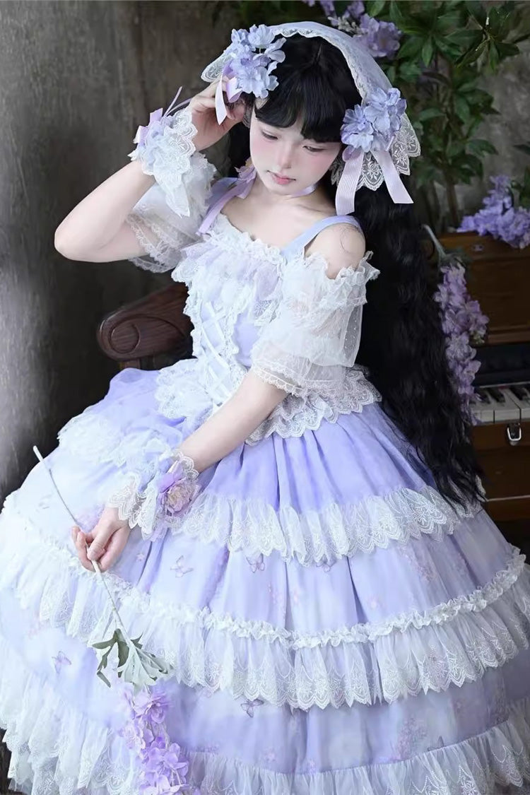 Include: Dress, Capelet, Detached Sleeves, Necklace, Square Scarf, Train, Floral Hair Accessory.