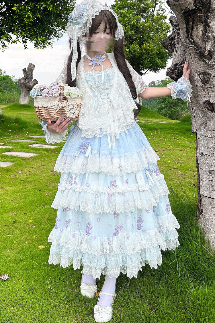 Feature: Multi-Layered, Print, Ruffle, Bowknot, Lace-Up