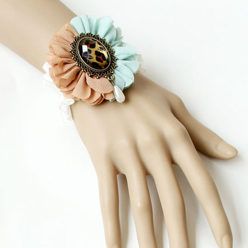 Vintage Leopard Print Gemstone Flower Lace Bracelet