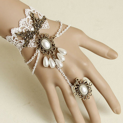 Vintage White Lace Bracelet Bride Wristband Jewelry Palace Ball Jewelry. The Width Of The Bracelet Lace Is About 4.4CM. The Front Lace Part Of The Normal Size Is About 13CM, Including The Two Metal Pieces That Clamp The Lace. The Back Is The Button And The Adjustment Chain. The Tightness Can Be Adjusted To 15CM, And The Loose Can Be Adjusted To 20CM. Hand-Made, There Is An Error Within 2CM. The Length Of The Decorative Part Of The Ring Is About 3.2CM, The Width Is About 2.7CM, The Inner Diameter Of The Ring Is 1.7CM, And The Length Of A Circle Is 6CM. There Will Be Errors In Manual Measurement. Generally, The Length Of A Finger Circle Can Be Adjusted And Can Be Worn Between 5CM And 6CM. If It Is Less Than 5CM, It Is Recommended To Buy It Back And Adjust The Ring Circle, And Wrap The Cotton Thread. This Will Be Smaller And Comfortable.