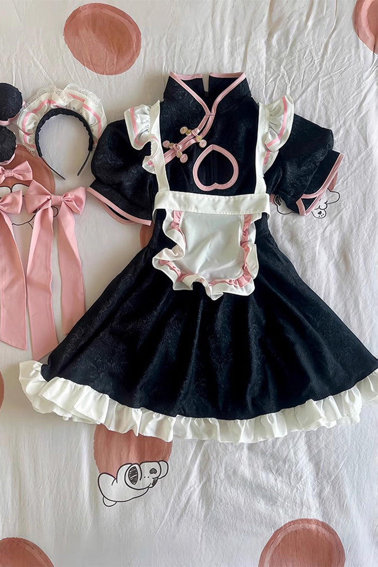 Include: Dress + Head Bow+ Bowknot + Apron + Socks + Petticoat