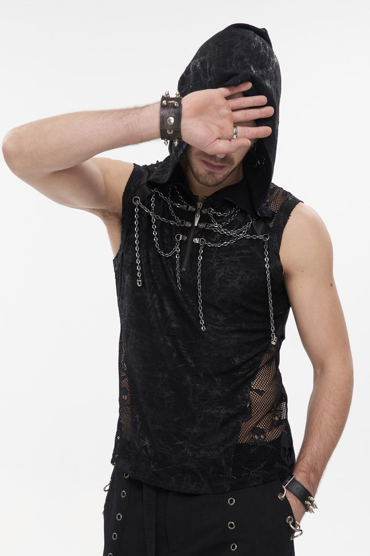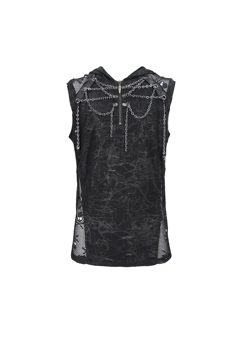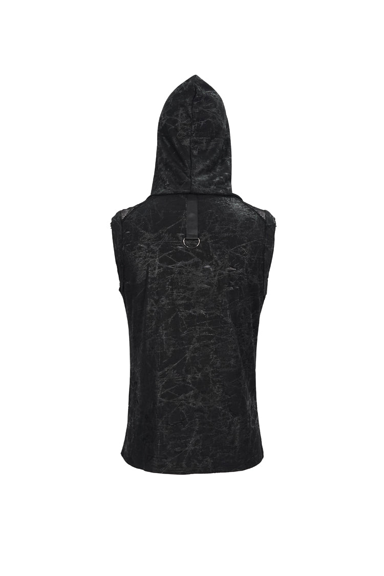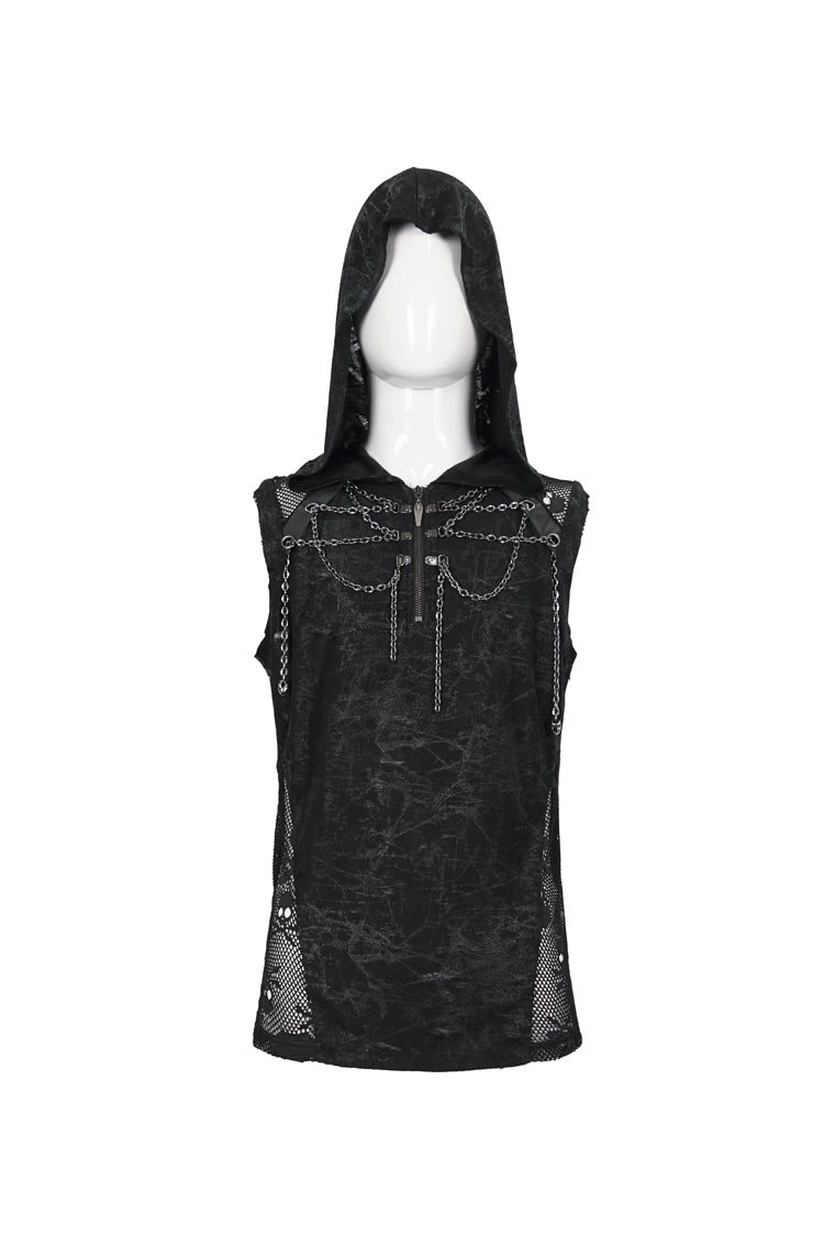 The main fabric adopts irregular printing and ragged knitting, which has good elasticity. Hooded sleeveless version. The front and middle chains are wound, and the metal zipper can be opened.