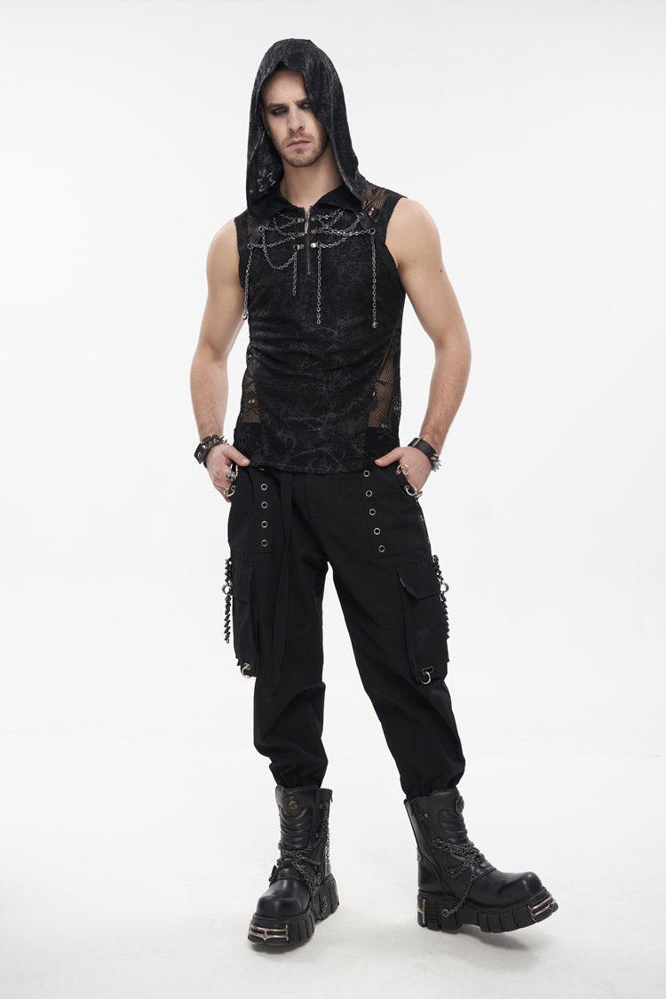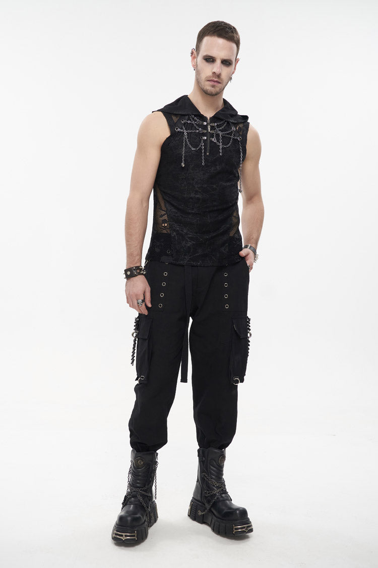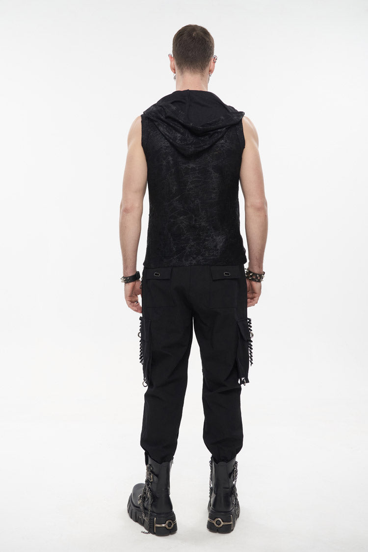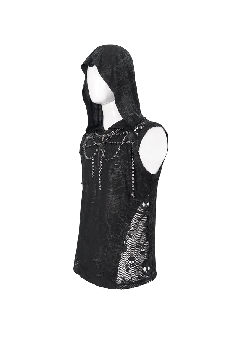 The main fabric adopts irregular printing and ragged knitting, which has good elasticity. Hooded sleeveless version. The front and middle chains are wound, and the metal zipper can be opened.