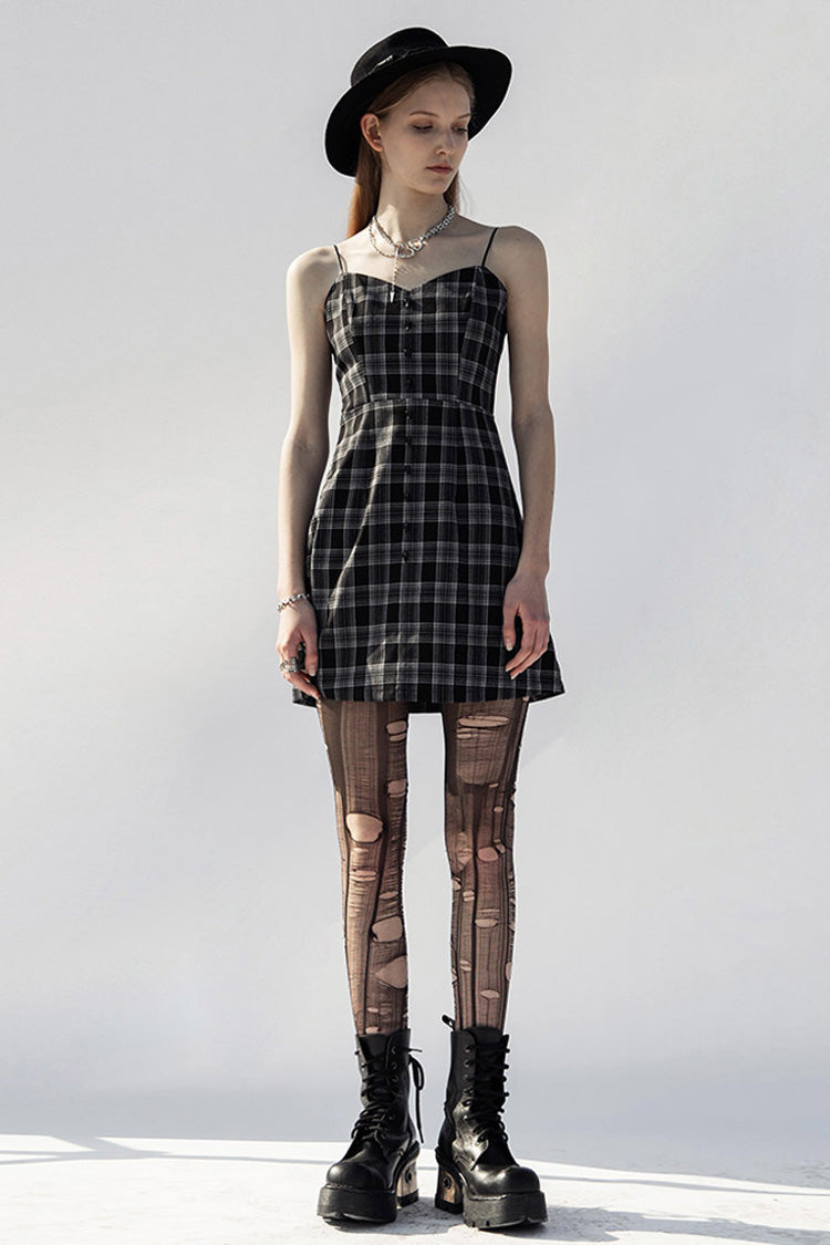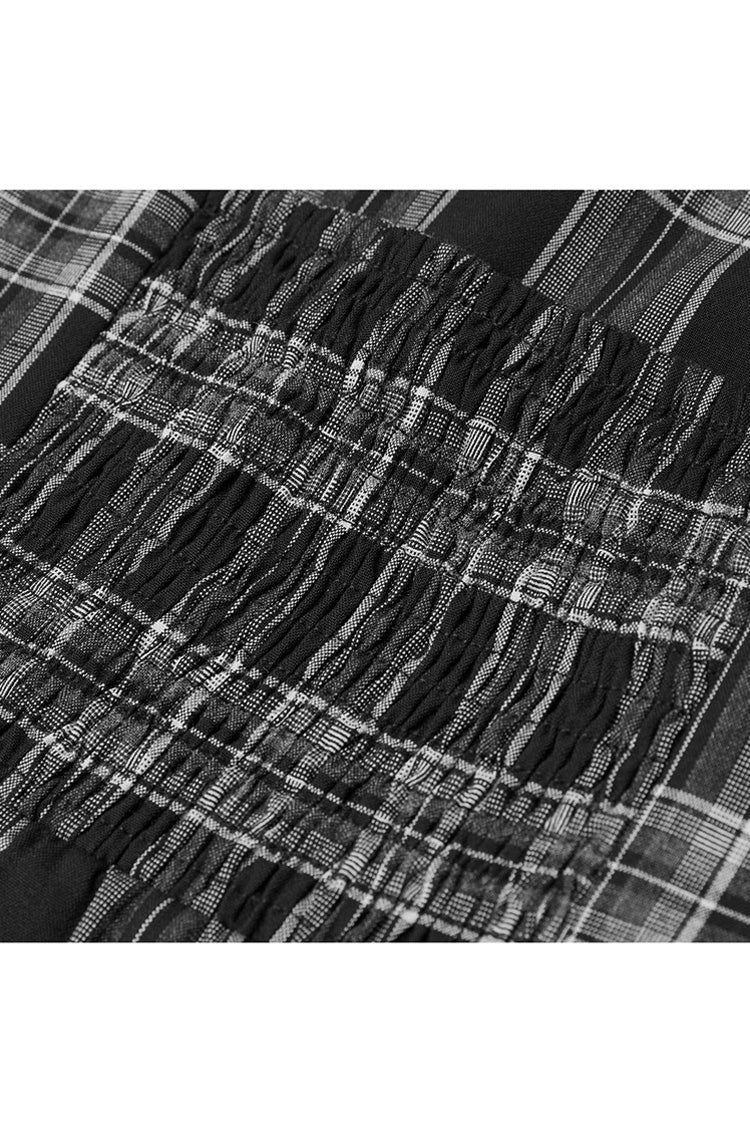2. Grey and Black Plaid non-elastic woven fabric has delicate texture.
