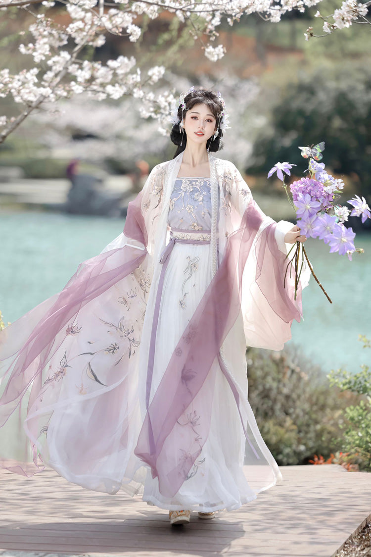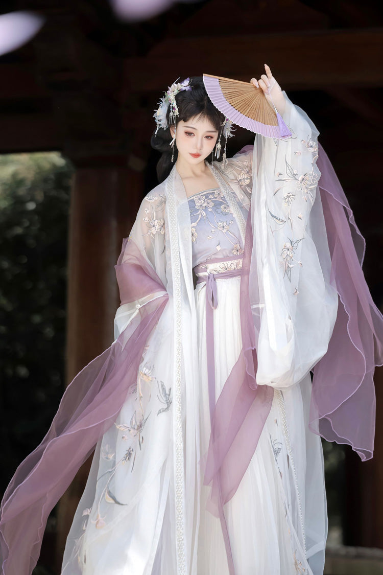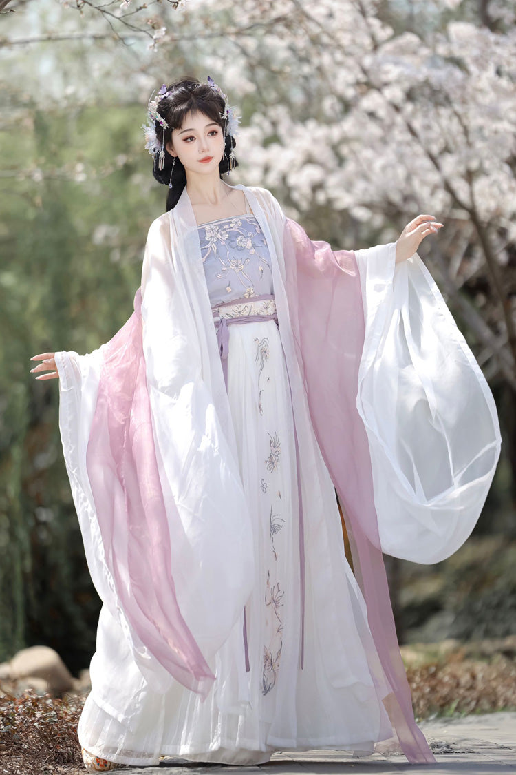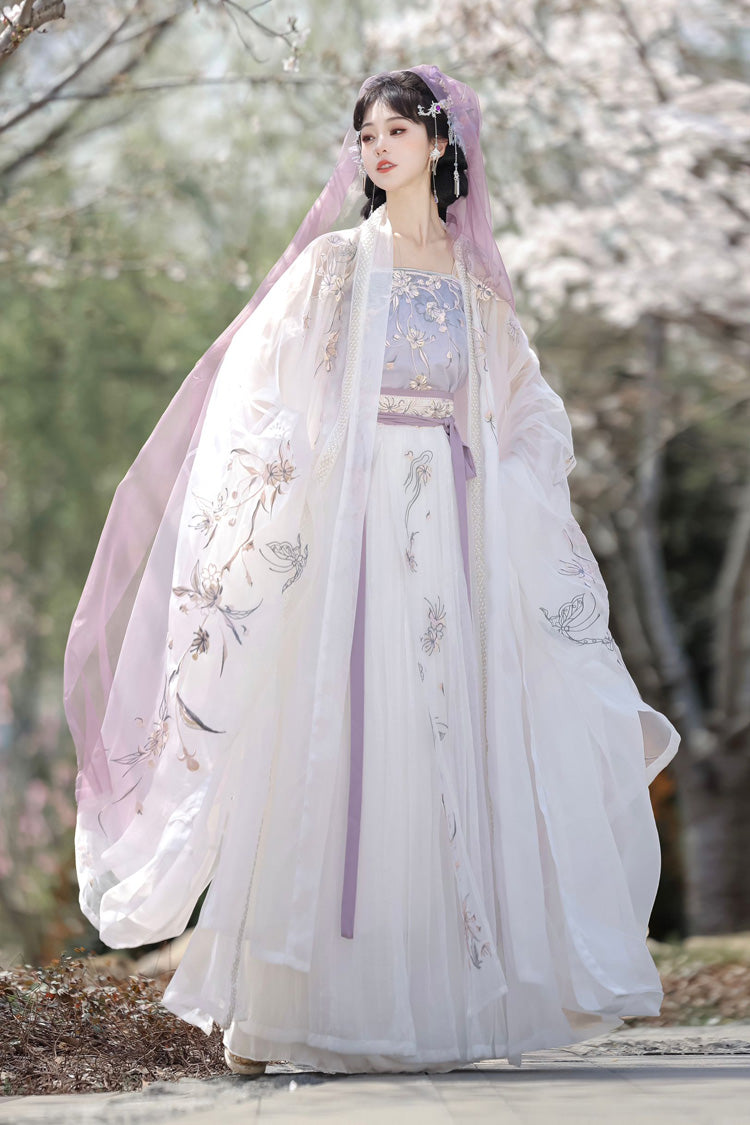 Include: Outer Wide-sleeve Shirt + Inner Wide-sleeve Shirt + 4.5-meter Hem Skirt Dress + Embroidered Camisole + Draping Shawl + Double-layered Winged Sleeves