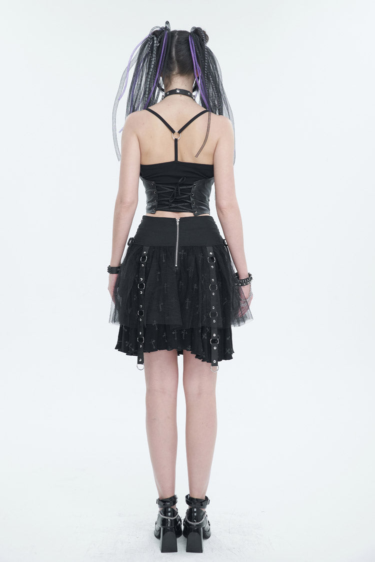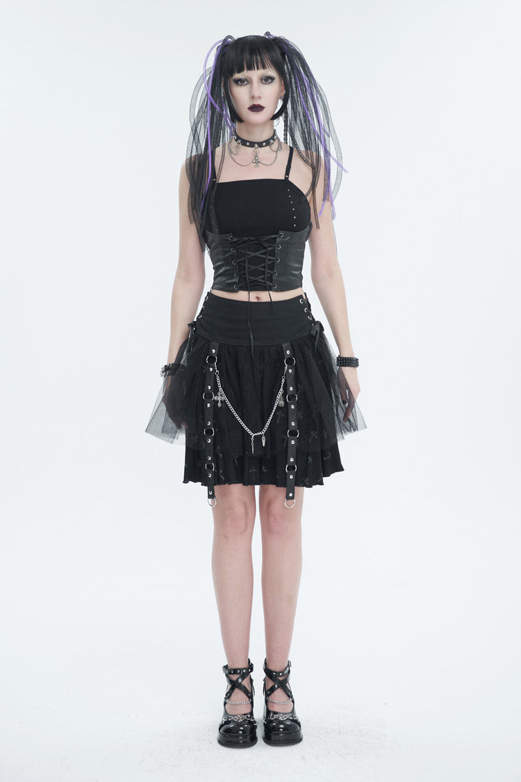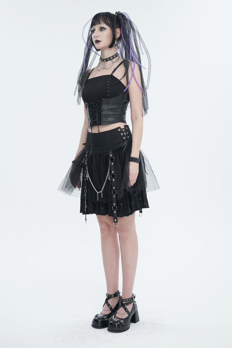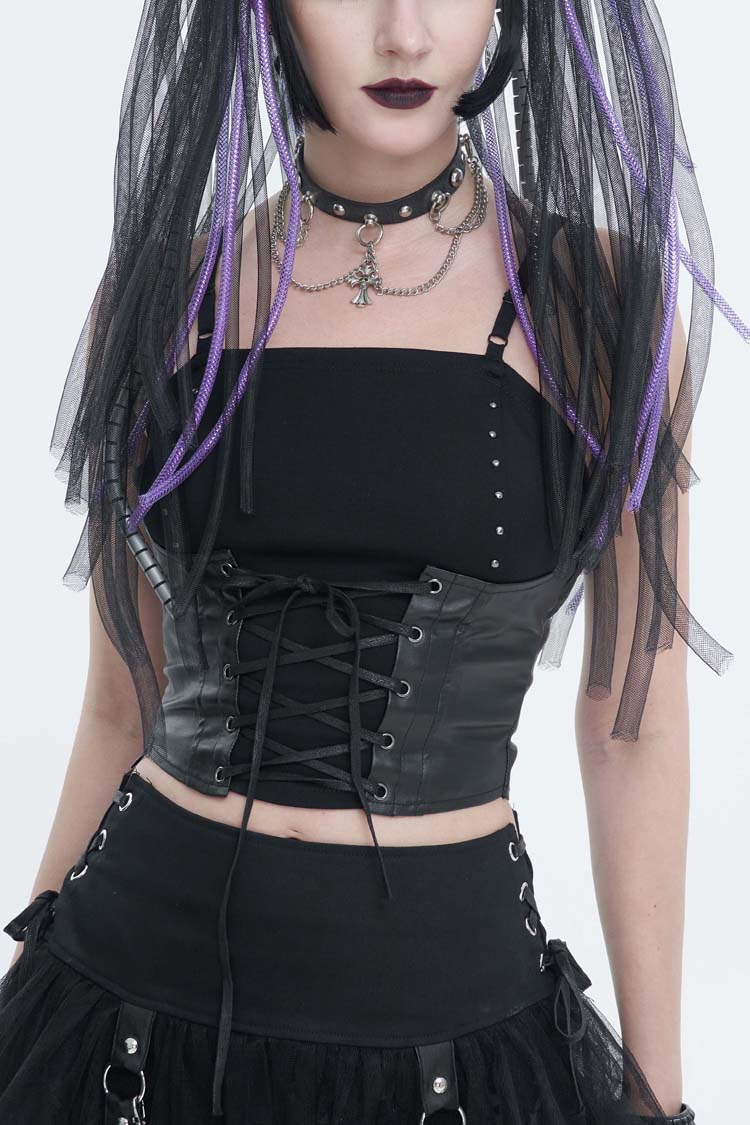 1. Knitted fabric is combined with leather-like rubberized woven fabric to make a fake two-piece camisole.