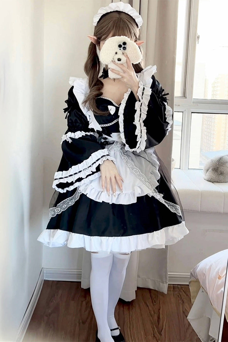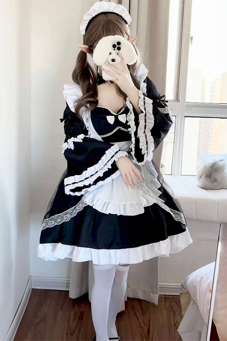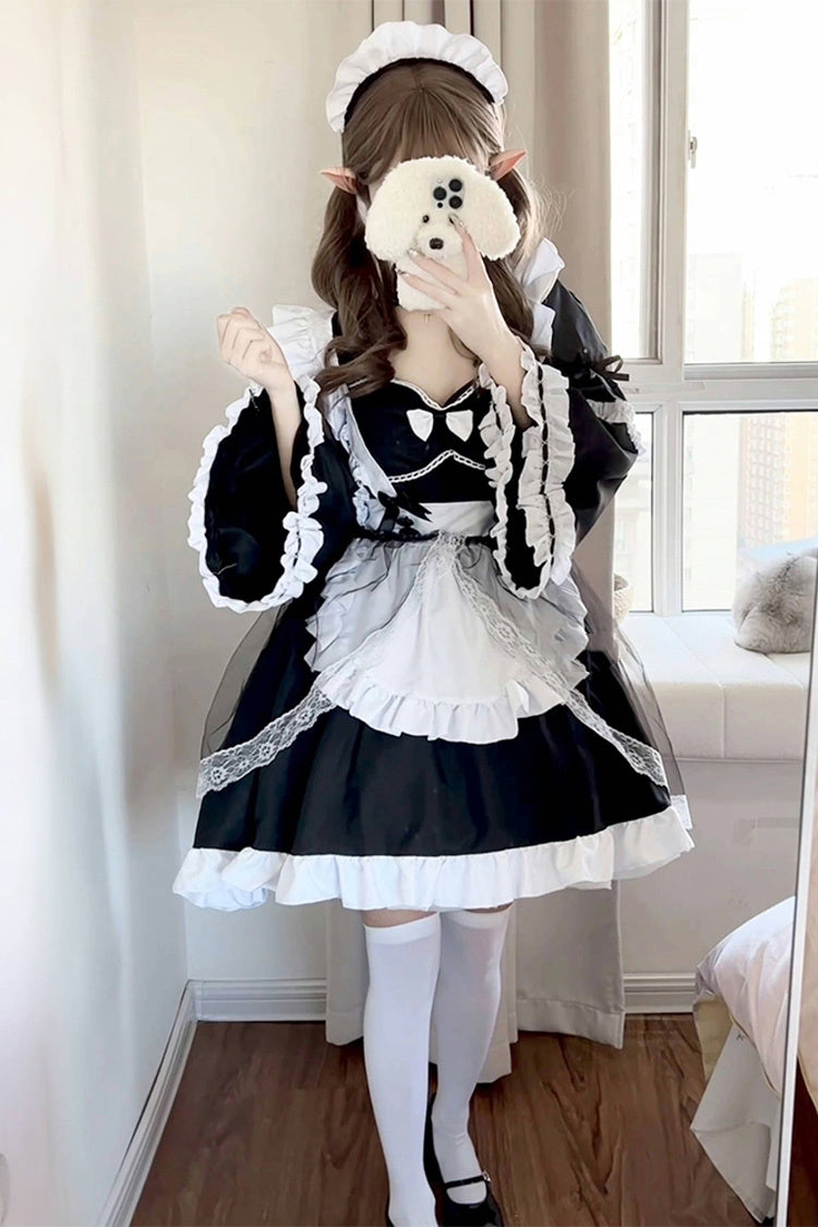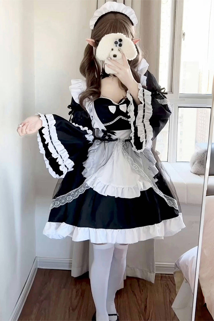 Include: Dress + Apron + Necklace + Headdress + Sleeve + Bow + Socks + Petticoat