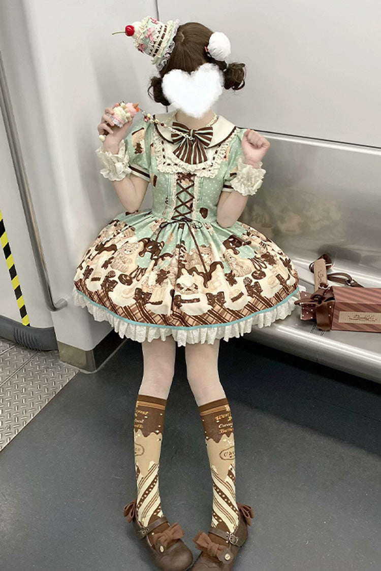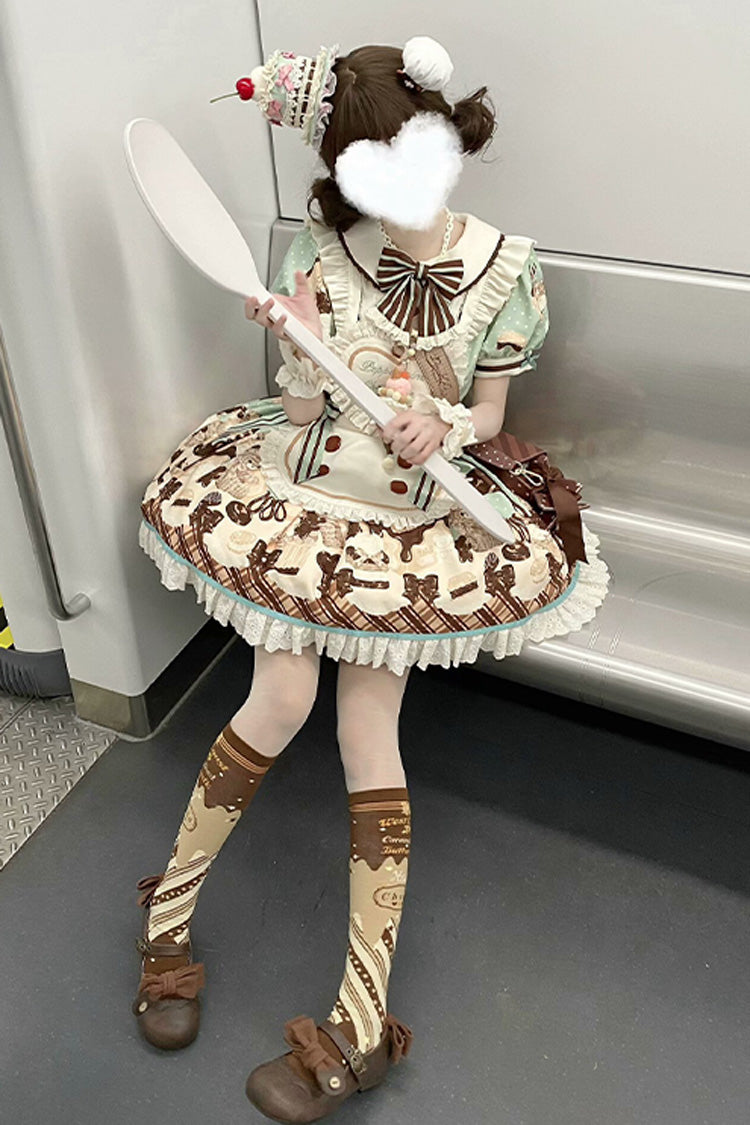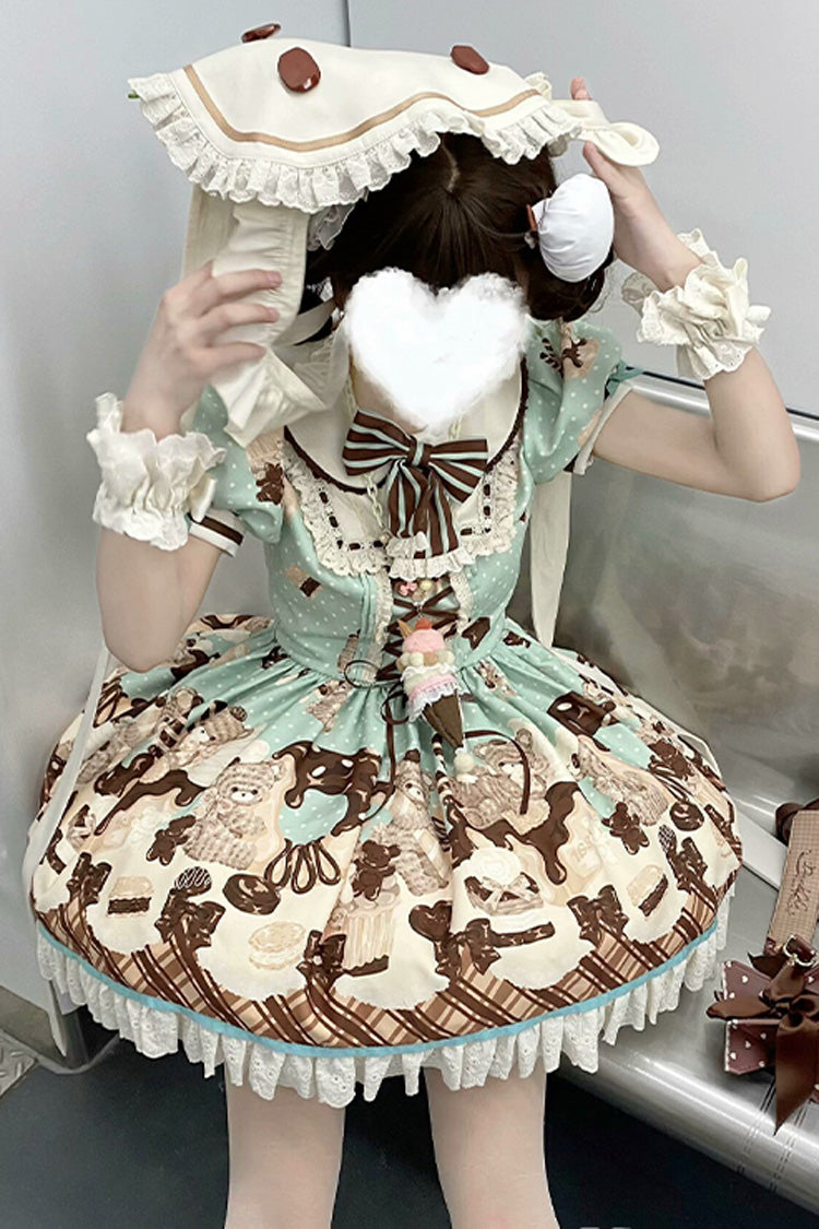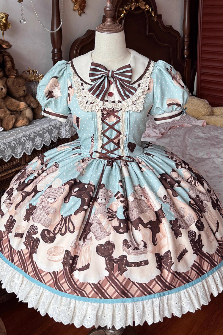 Feature: Print, Ruffle, Bowknot, Lace-Up