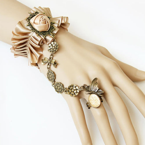 Vintage Lace Bracelet With Ring One Chain Creative Jewelry Accessories Ring. The Width Of The Bracelet Is About 3.5CM, The Front Lace Part Of The Normal Size Is 13CM, The Back Is The Button, And The Adjusting Chain, It Can Be Adjusted To 15CM For Tight, And 22CM For Loose. Hand-Made, There Is An Error Within 2CM. The Length Of The Decorative Part Of The Ring Is About 3.5CM, The Width Is About 2.2CM, The Inner Diameter Of The Ring Is 1.7CM, And The Length Of A Ring Is 6CM. There Will Be Errors In Manual Measurement. Generally, The Length Of A Finger Circle Can Be Adjusted From 5CM To 6CM And Can Be Worn. If It Is Less Than 5CM, It Is Recommended To Buy Back And Adjust The Ring And Wrap It With Cotton Thread. It Will Be Smaller. Will Be More Comfortable. The Ring Is Bronze.