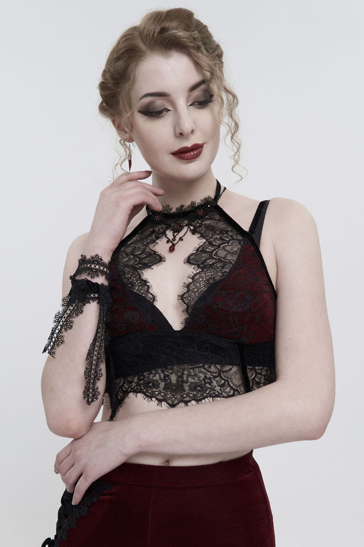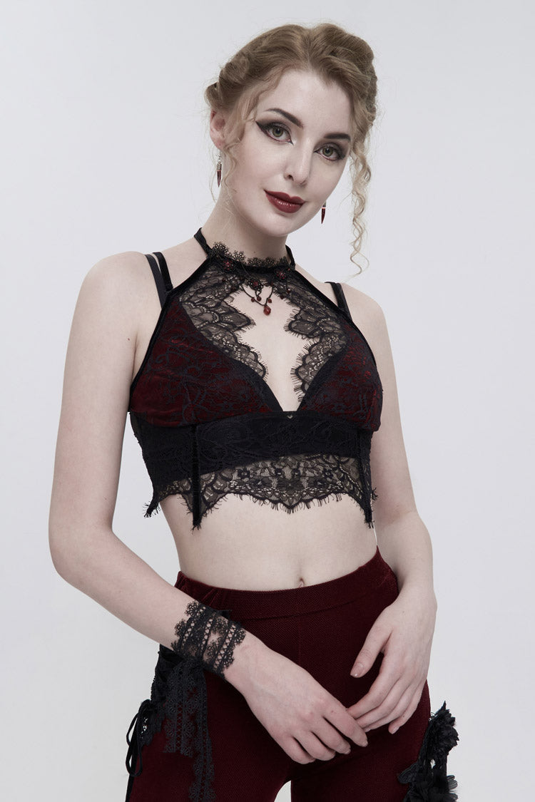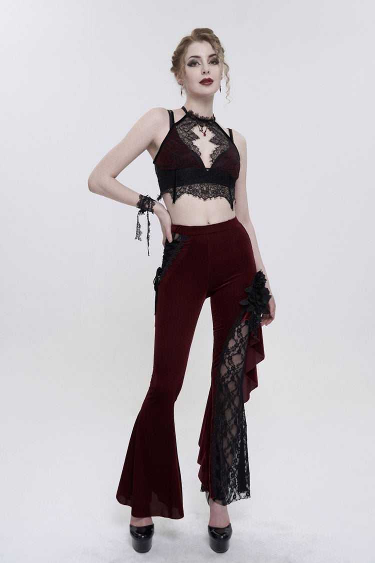 The burgundy velvet fabric is matched with eyelash lace, designed as sexy underwear, and the eyelash lace is made from the original edge, which is very delicate. Elastic rubber string at the back crisscross and hidden zip at the side.