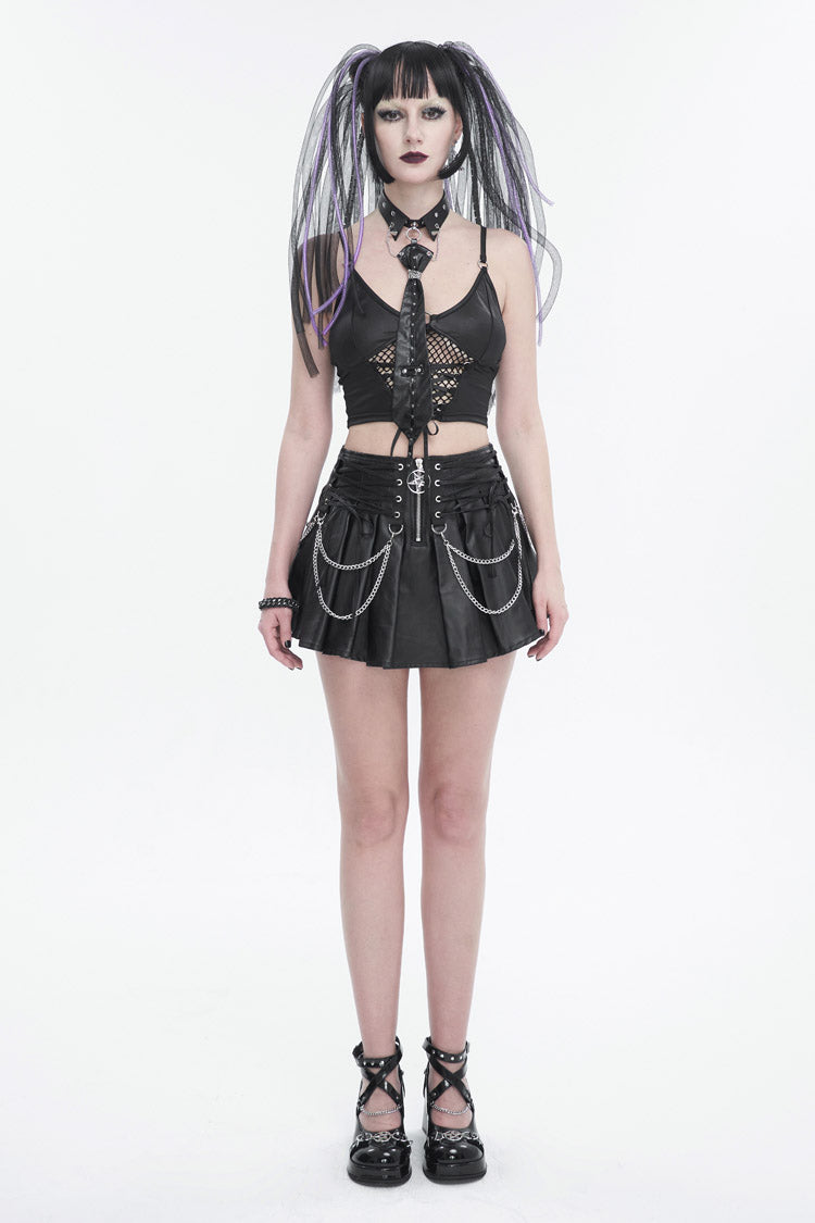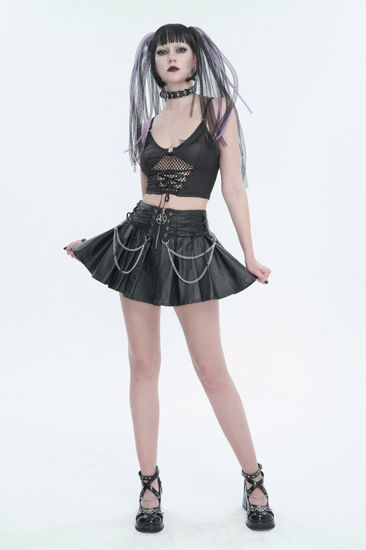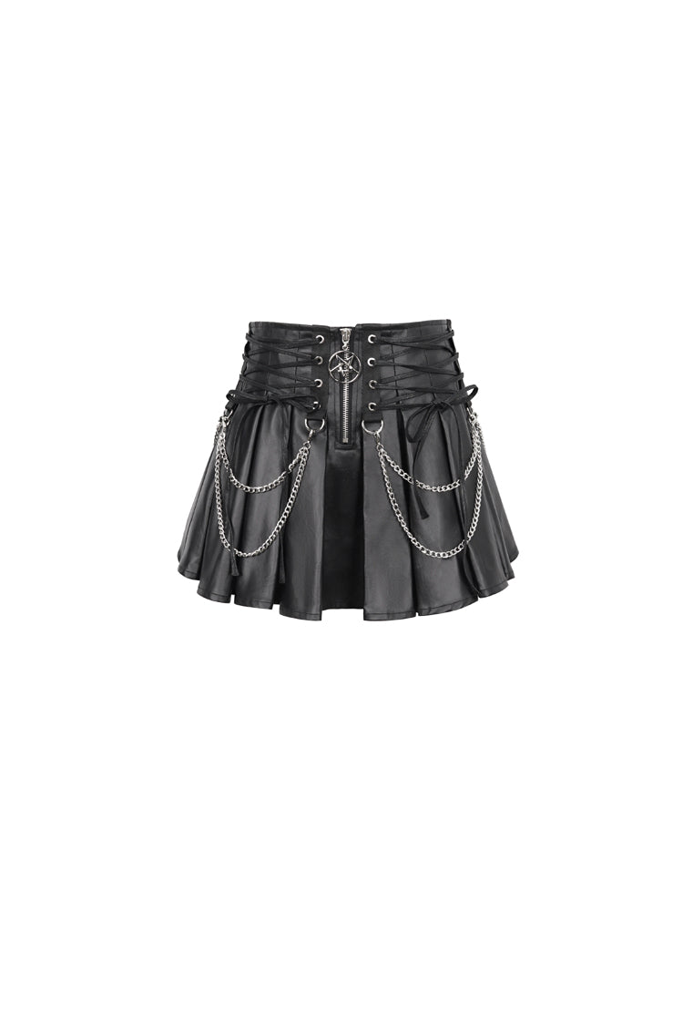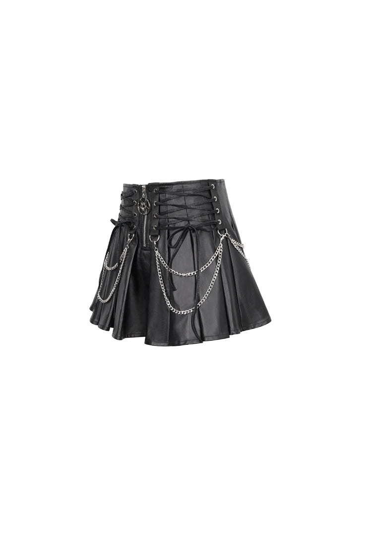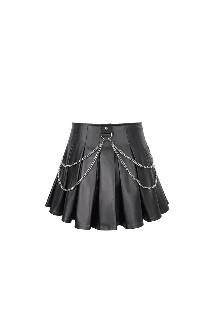 1. Jupe plissée A-hem, entièrement en cuir synthétique.