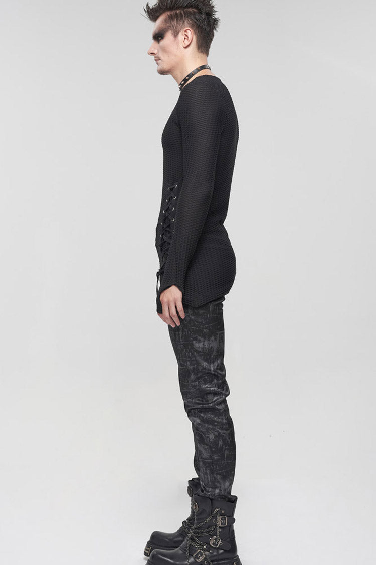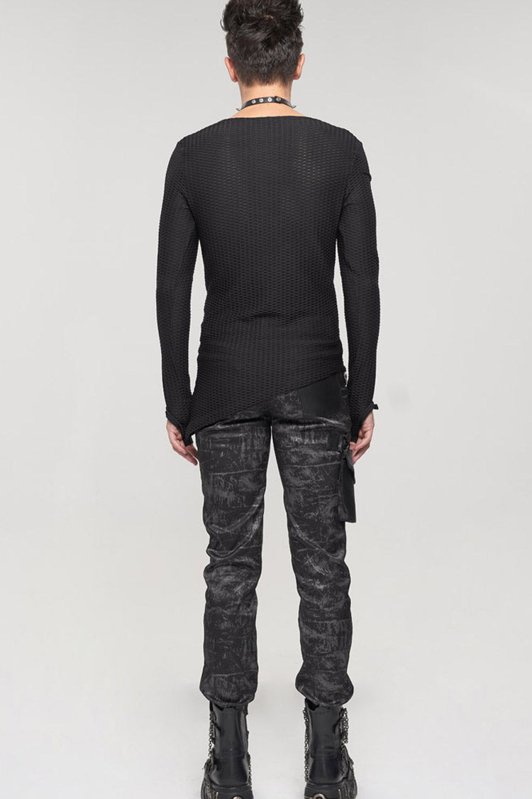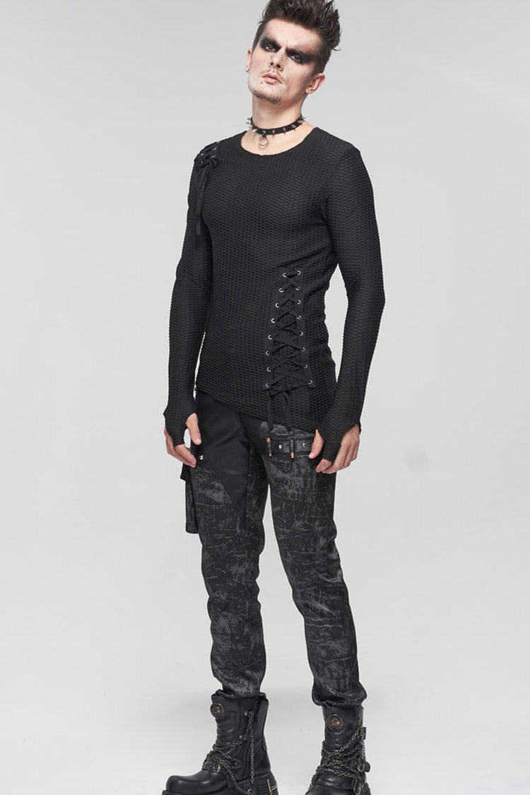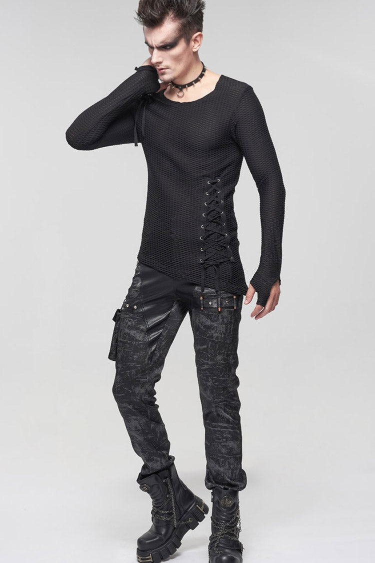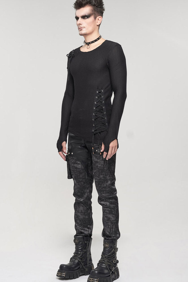 L'ensemble de la pièce est fabriqué en tissu à mailles grossières avec une bonne élasticité. L'épaule et la taille sont en sangle de voiture asymétrique avec œillets et cordons de serrage. L'ourlet biseauté et les poignets peuvent être couverts avec les doigts. Convient pour un usage quotidien.