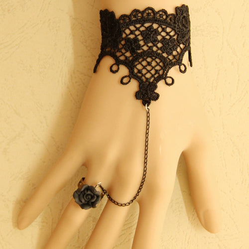 Matériaux : Anneau en bronze ajustable, Dentelle noire