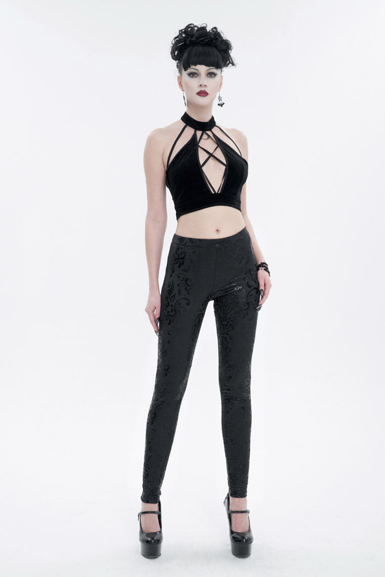 1. Étirez le tissu tricoté imprimé pentagramme gothique pour réaliser l'ensemble de la pièce.