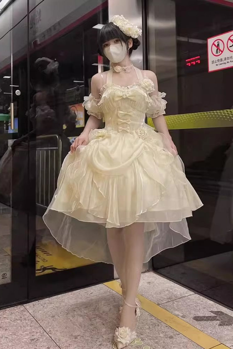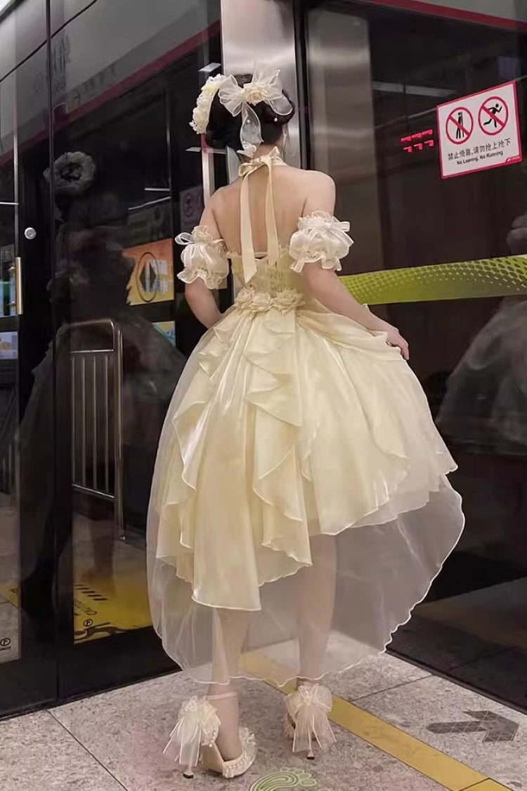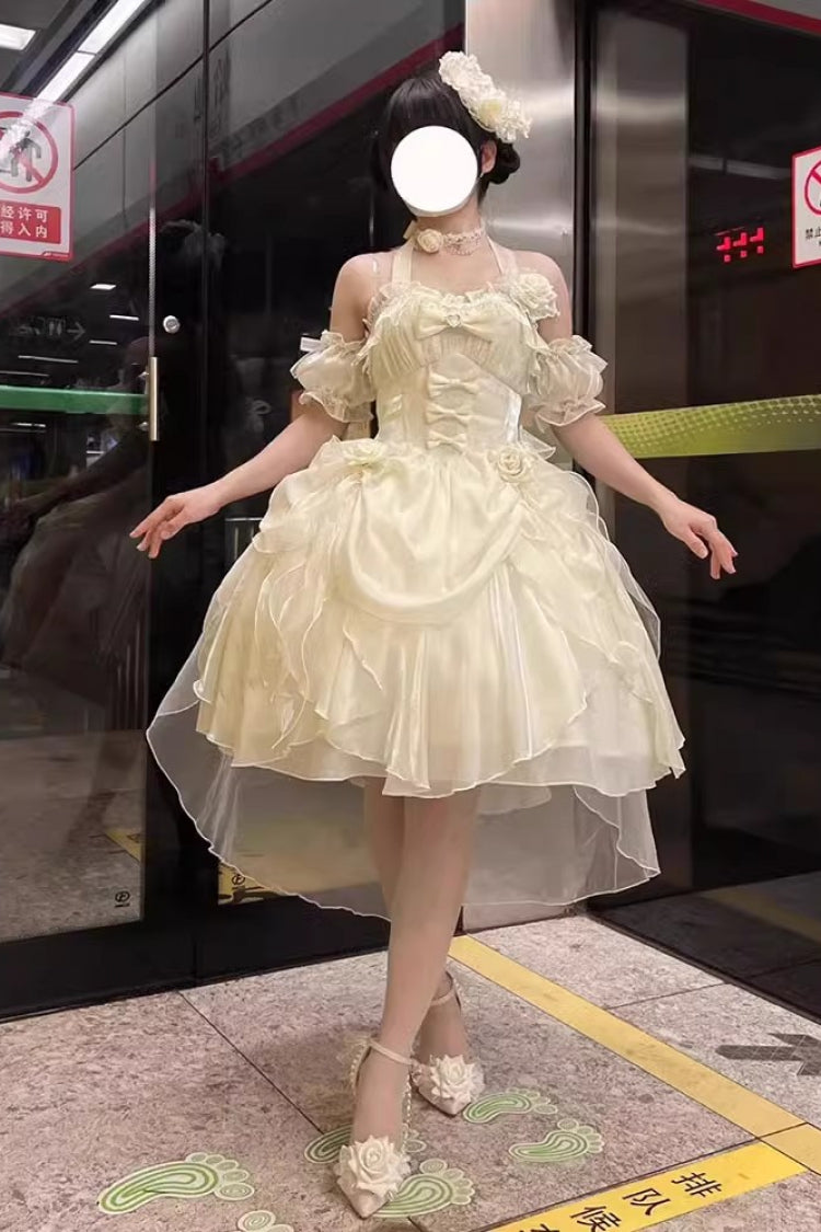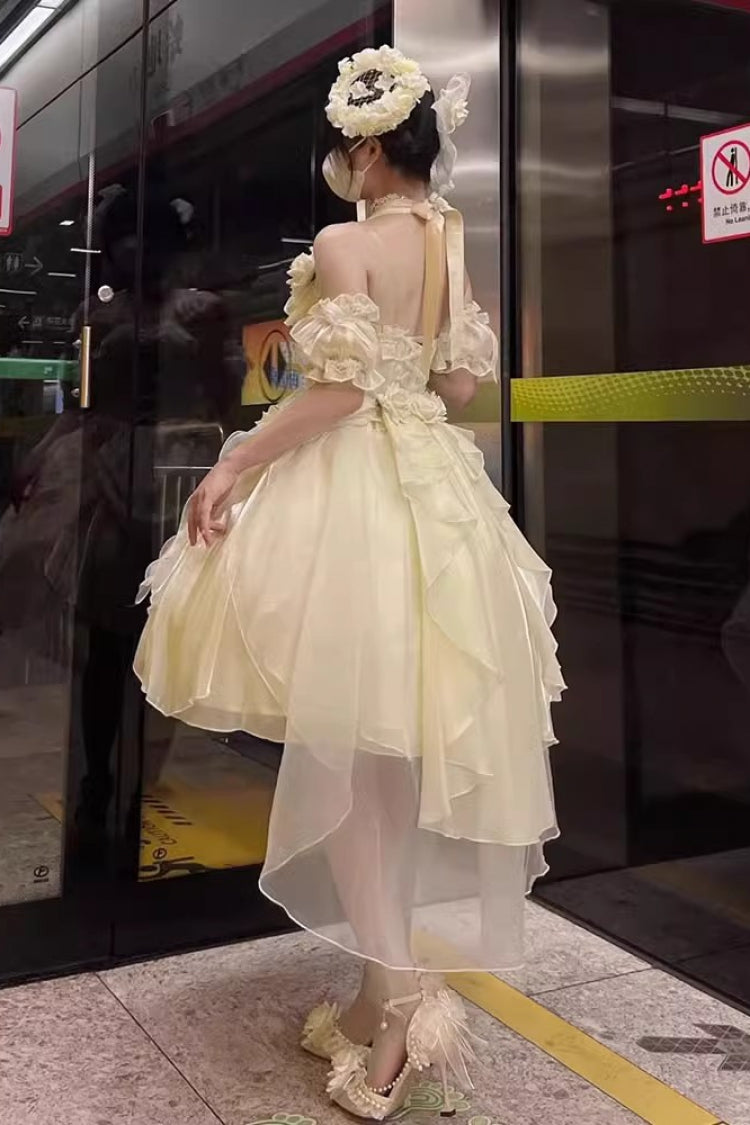 Inclut: Robe + Traîne + Manches + Surjupe + Fleurs de jupe
