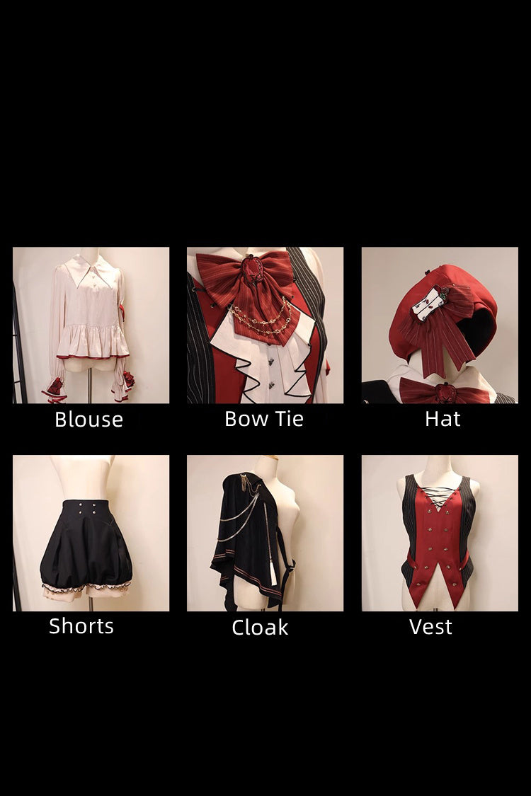 Comprend: Haut + Short + Gilet + Nœud papillon + Cape + Chapeau