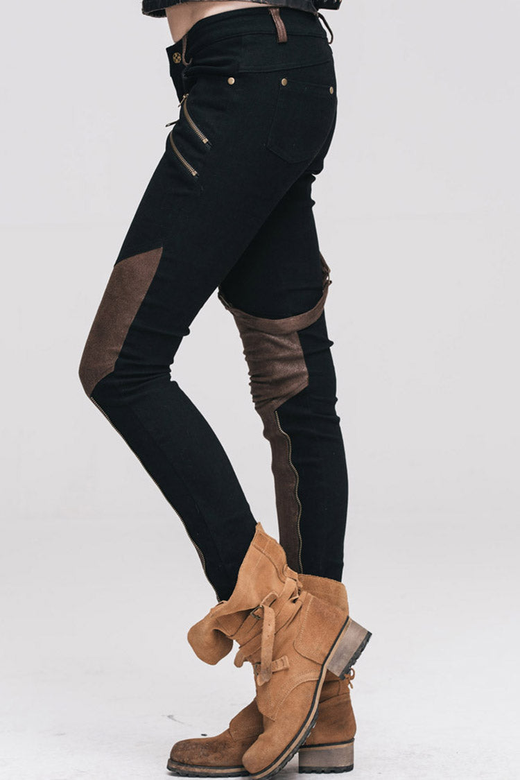 Le tissu principal est fait de sergé élastique noir. Le sac de jambe et l'avant de la jambe sont cousus avec un tissu collé au fer à repasser.
