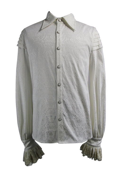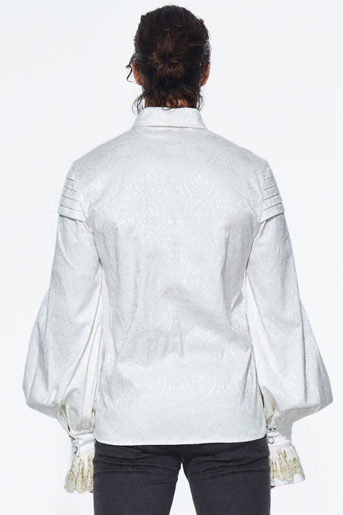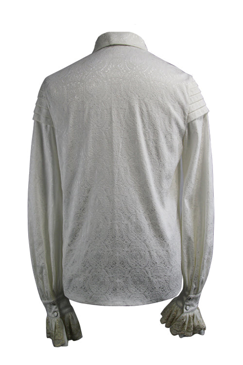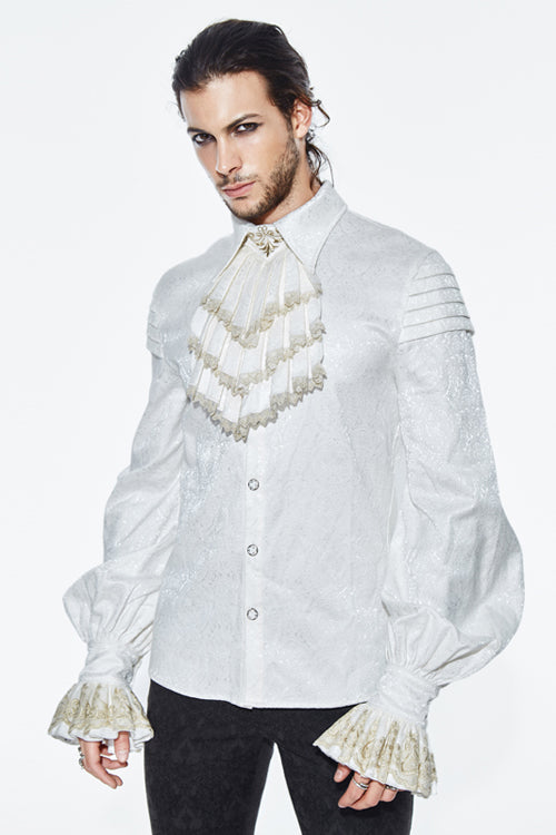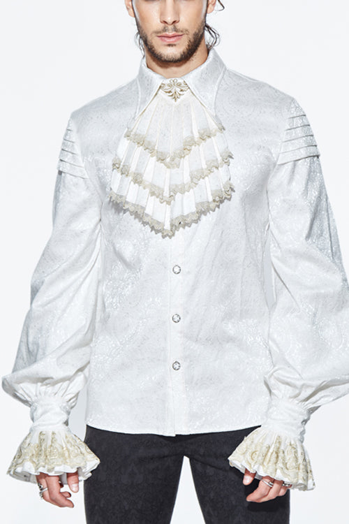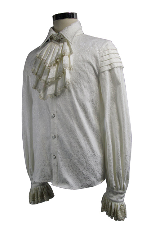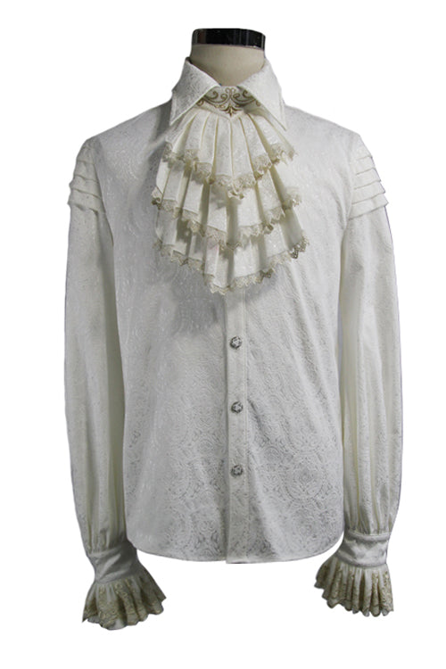 La pièce entière est faite de tissu jacquard blanc avec de la dentelle dorée de haute qualité. La partie supérieure de la manche est plissée. Le nœud papillon est brodé de motifs dorés, et peut être retiré.