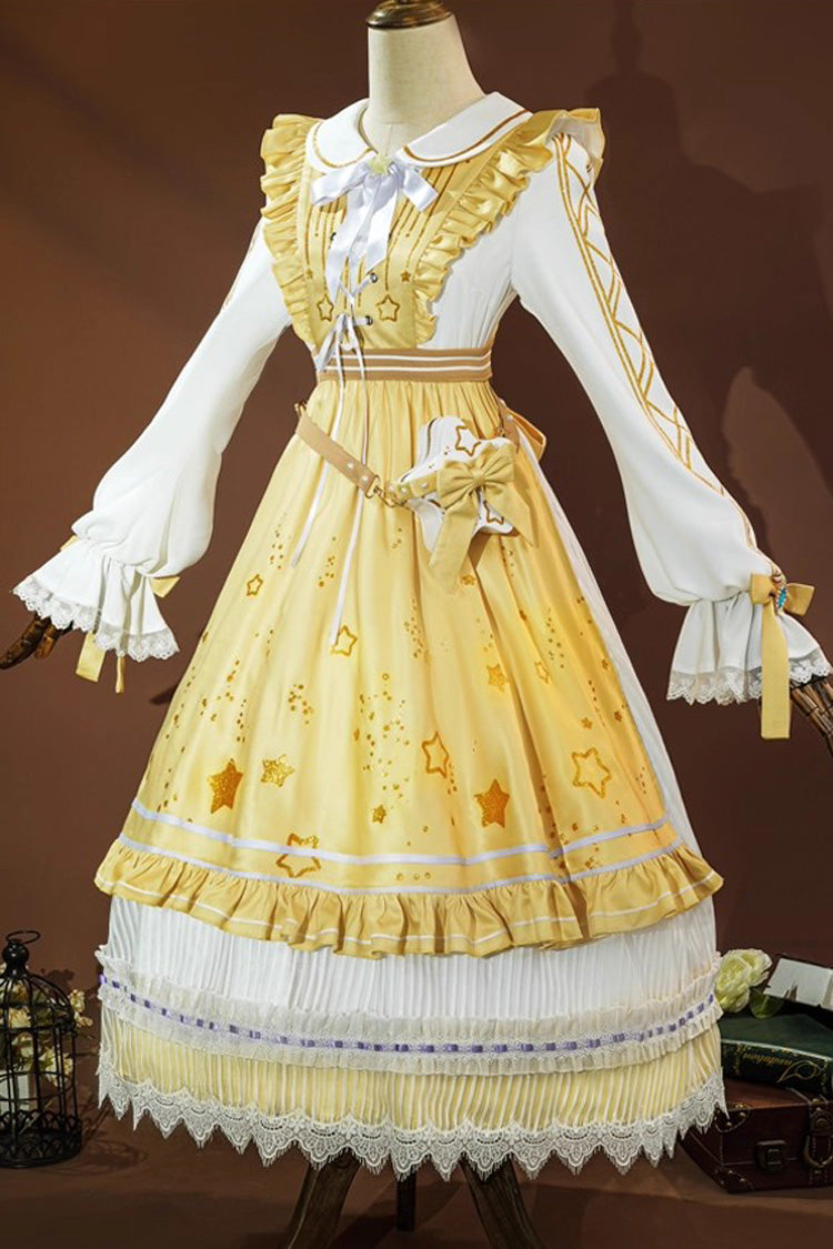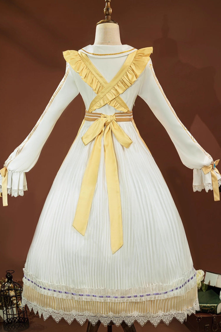 Inclut: Robe + Tablier + Nœud papillon aux poignets + Bandeau + Accessoires pour cheveux + Boucles d'oreilles + Lunettes