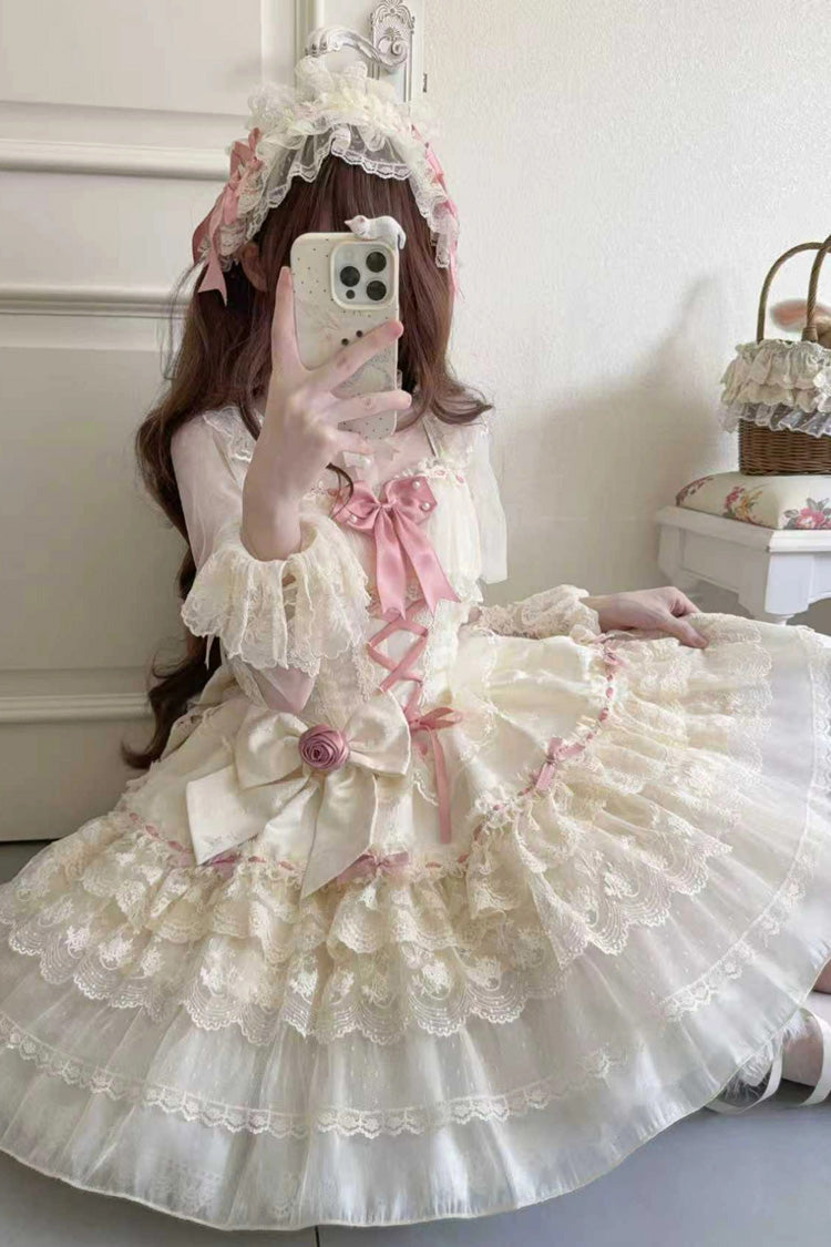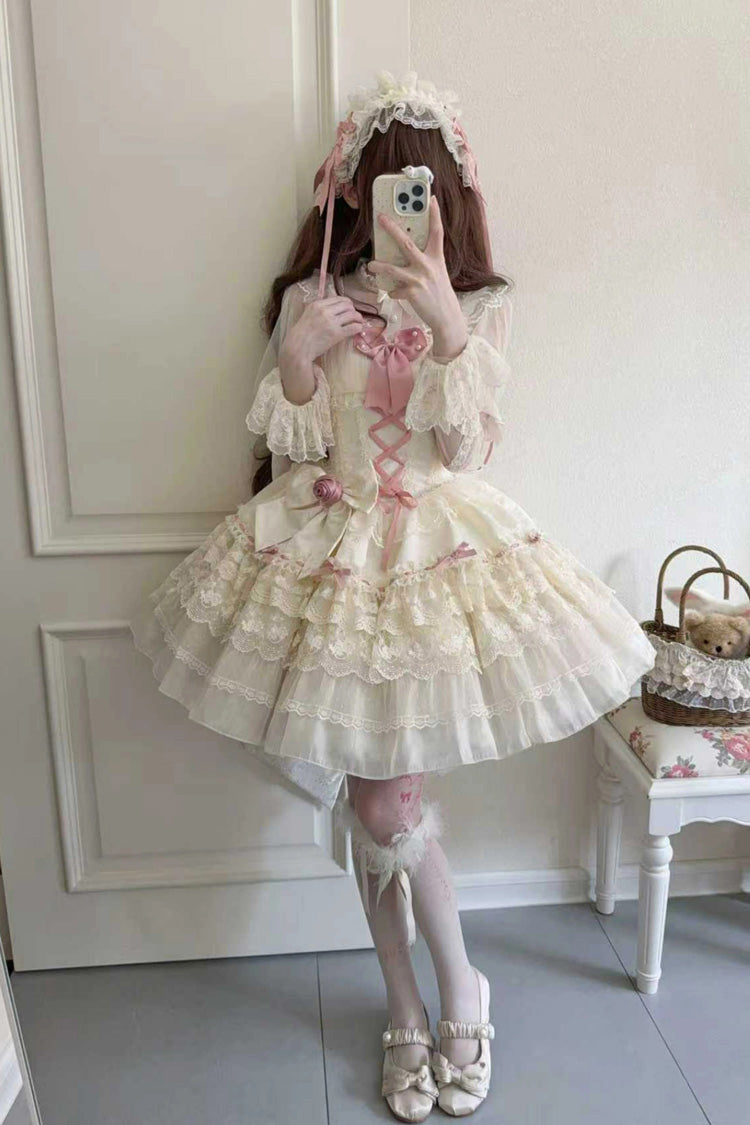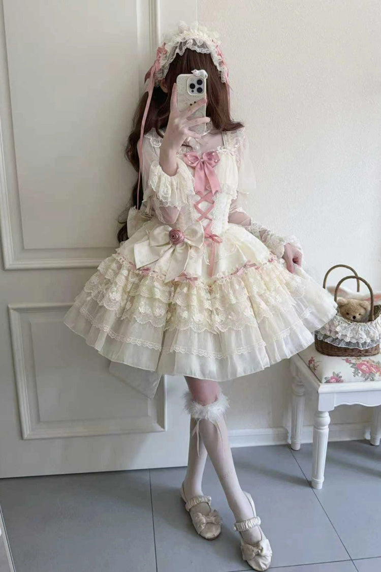 特徴: マルチレイヤー、リボン、レース、レースアップ、パール