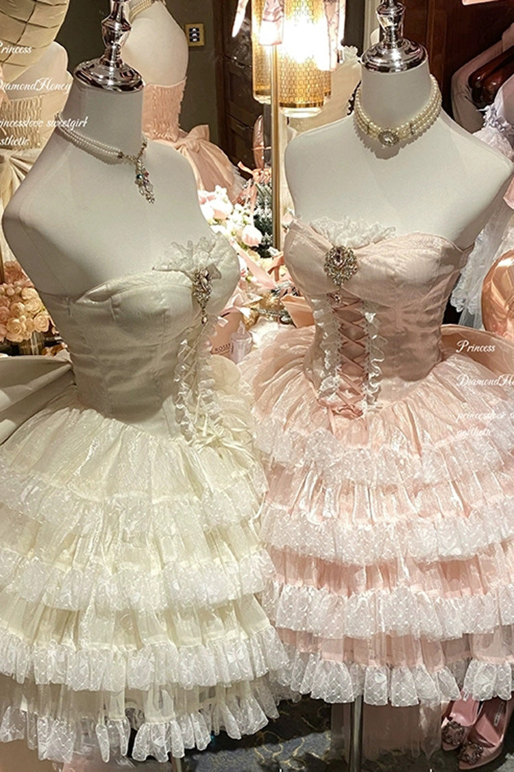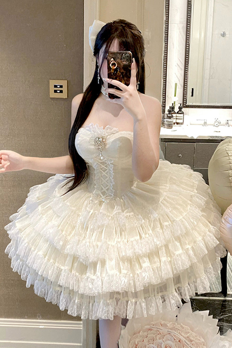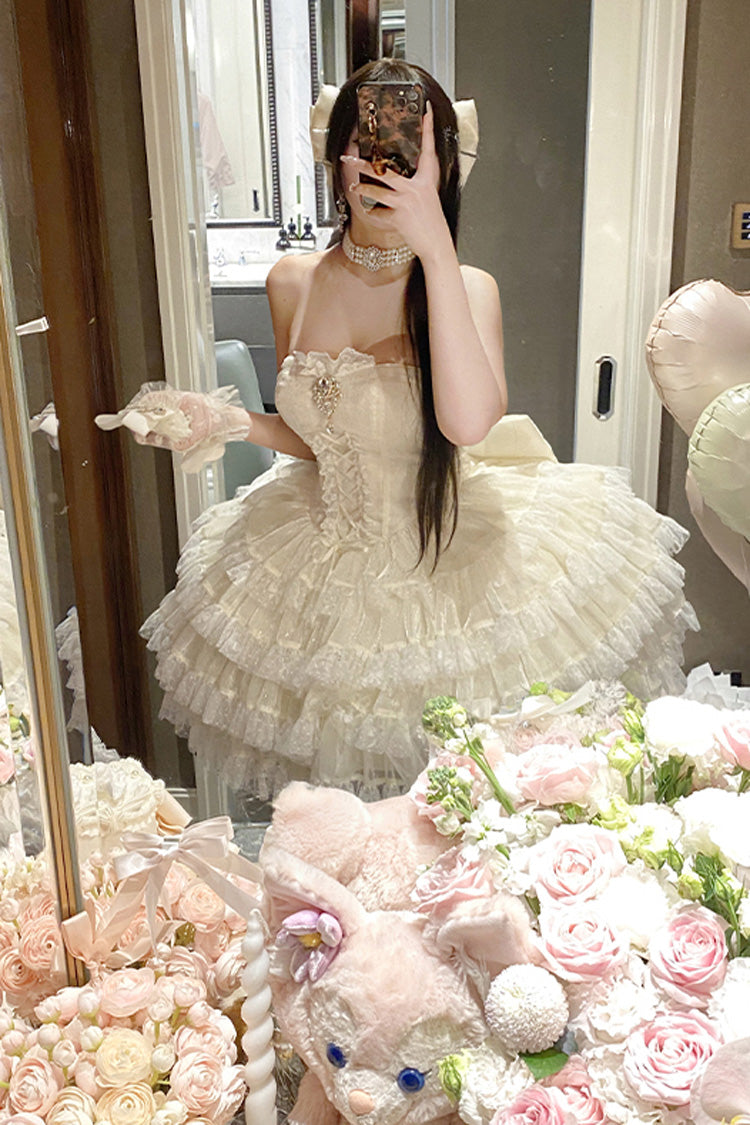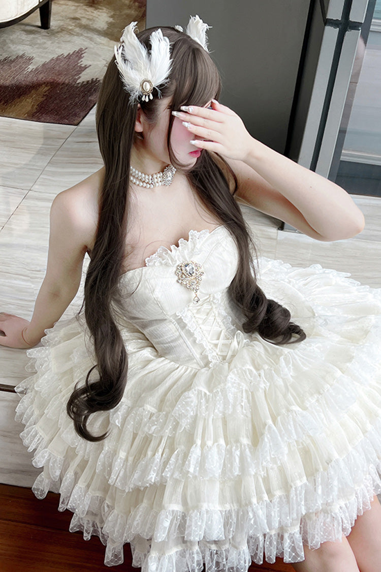 特徴: マルチレイヤー、ラッフル、ボウノット、レース、レースアップ