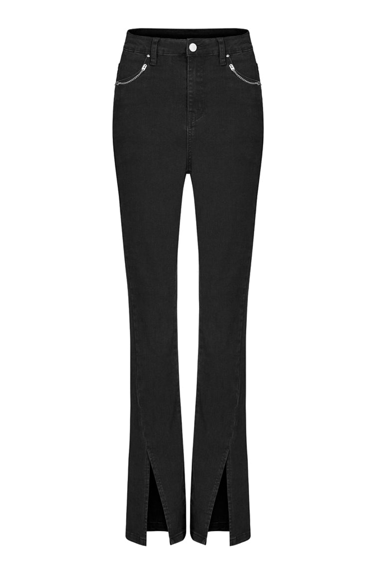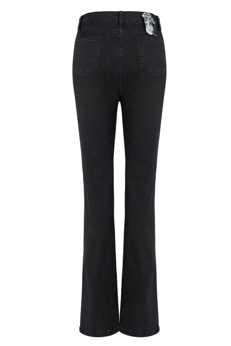 1. ハイウエストフィットのマイクロフレアカッティングで、すらりとした脚のラインをすっきりと整えます。