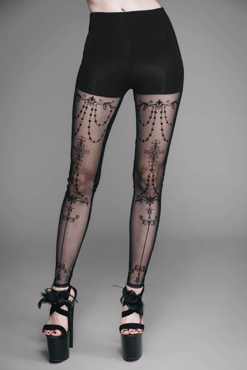 前もも部分はビーズチェーンパターンの植毛プリントが施された透明な伸縮性のあるネット、残りの部分は伸縮性のある純綿ニット生地で作られ、ウエストバンドのゴムバンドはダイヤモンドパターンジャカードで作られています。