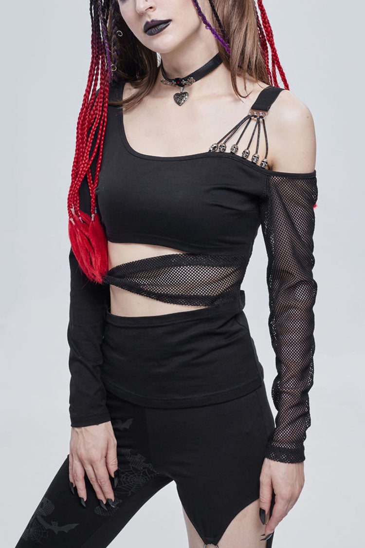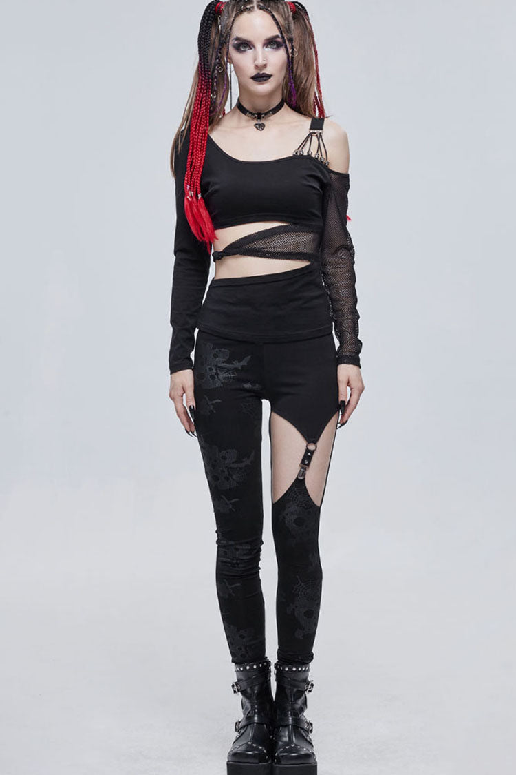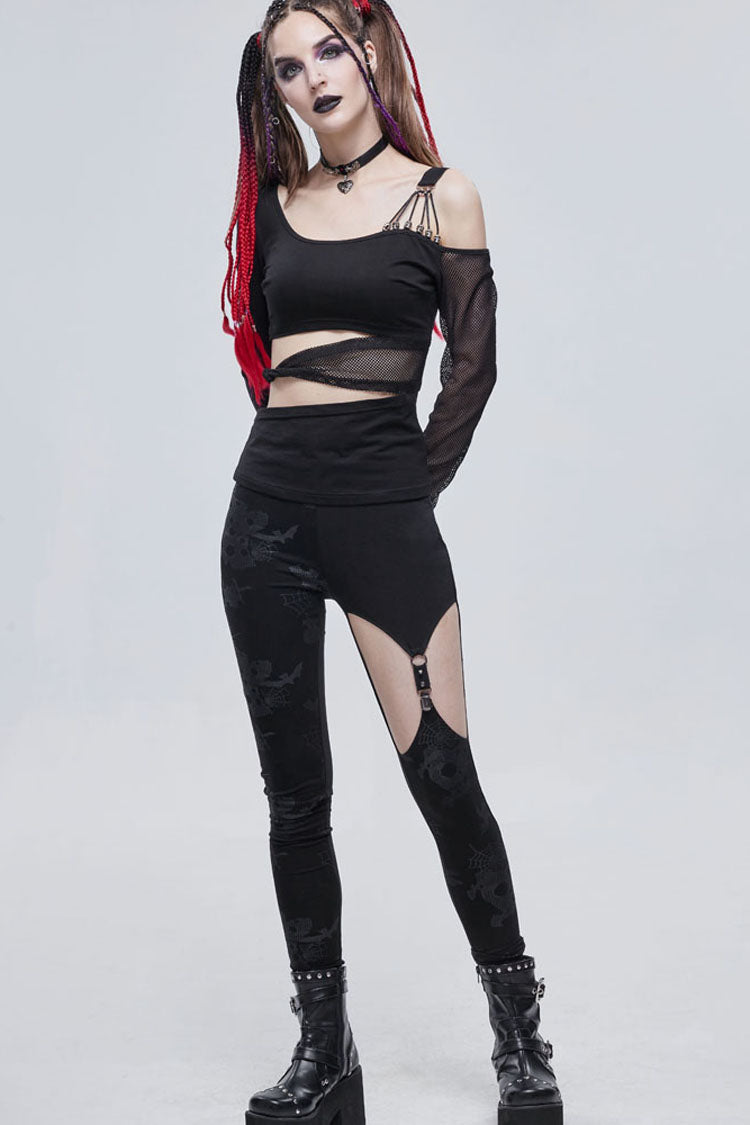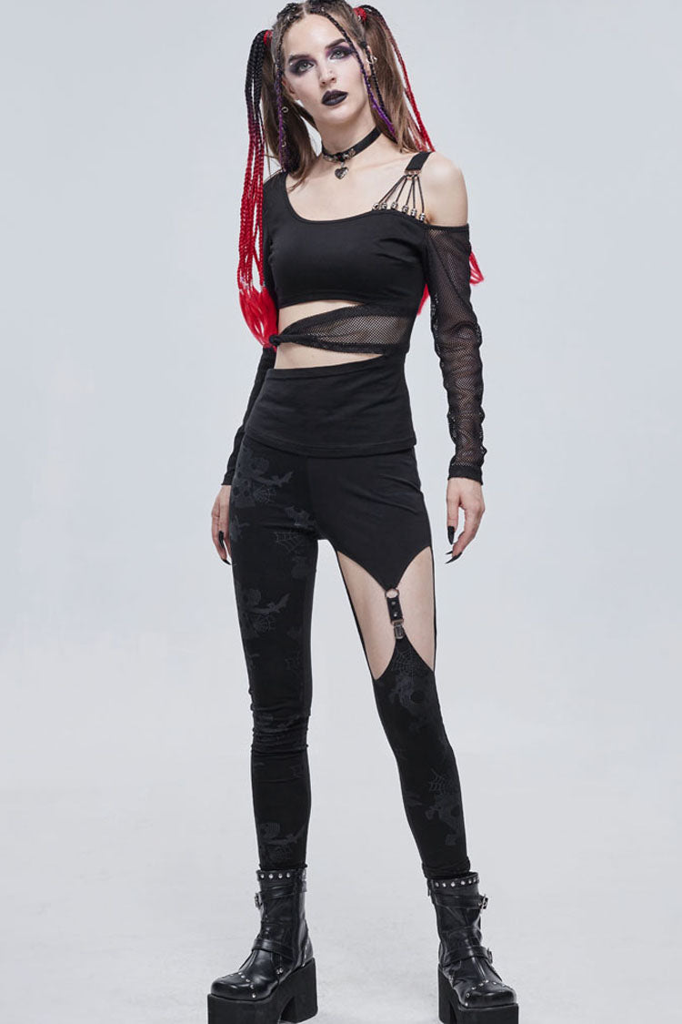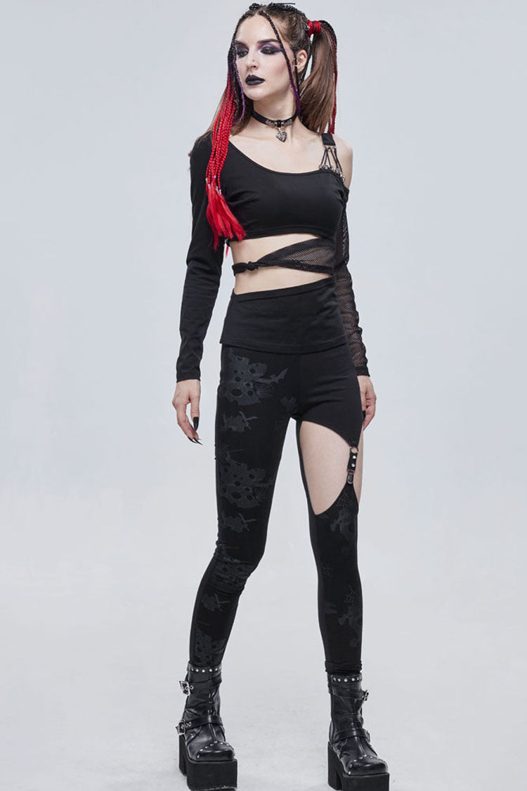 メイン生地は伸縮性に優れたコットンニット生地で作られ、ウエストはくり抜かれ、伸縮性のあるネットで結び目され、肩は非対称にデザインされ、ショルダーストラップは弾性ストラップとワックスロープで作られ、小さなスカルで装飾されています。鐘。