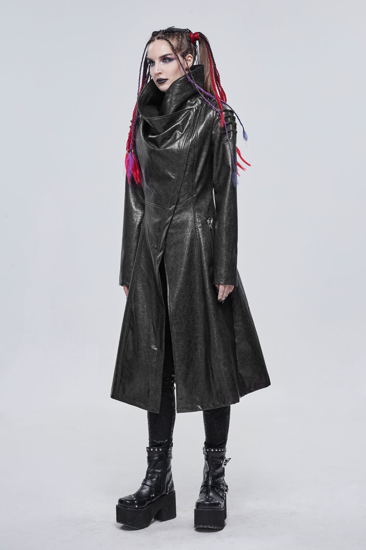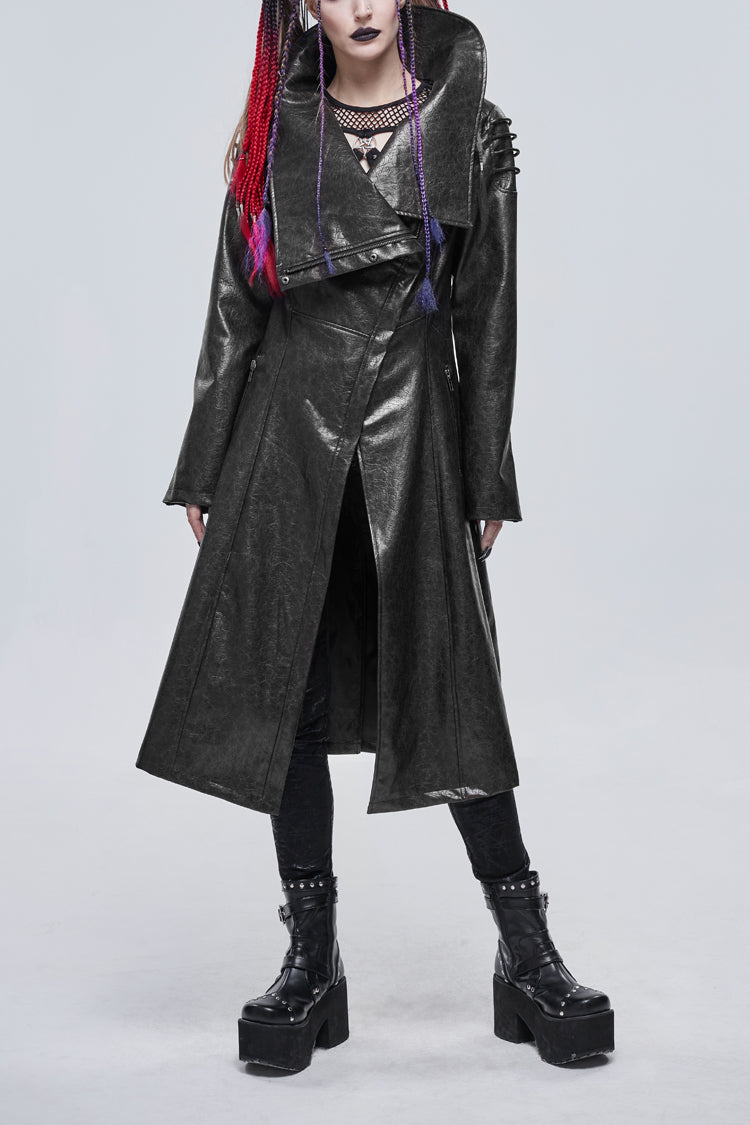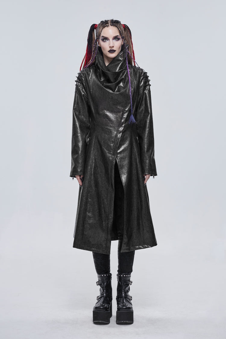 全体にはブラック/グレーのフリンジレザーを使用しており、水洗いすると手触りが柔らかくなります。パフビッグカラーは様々な着こなしが可能で、肩には鮮やかな太いロープが施されています。