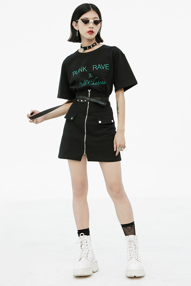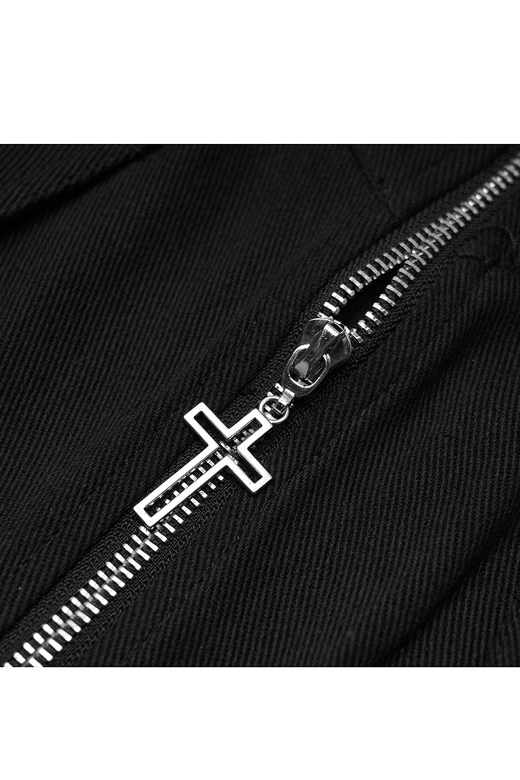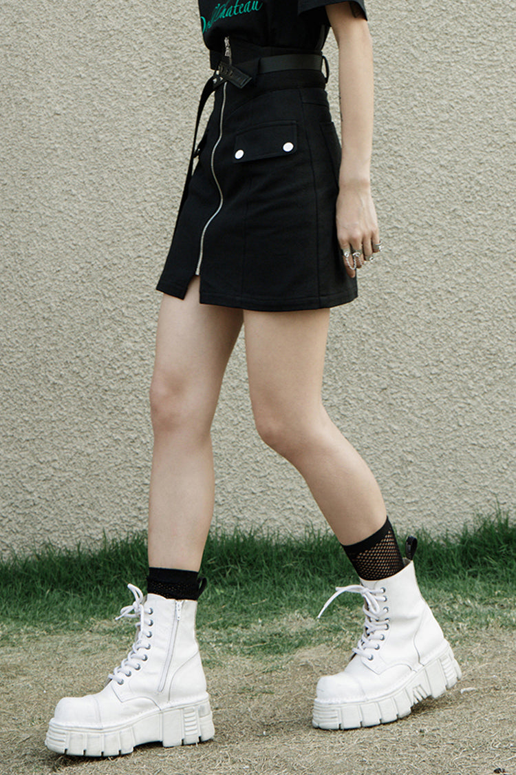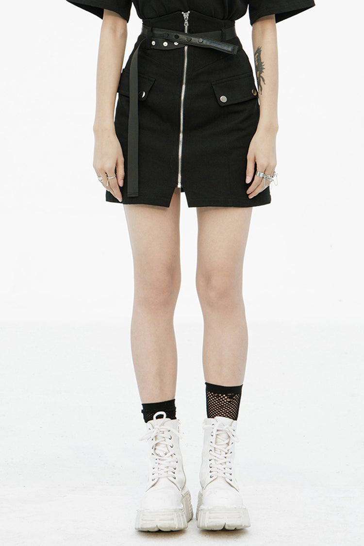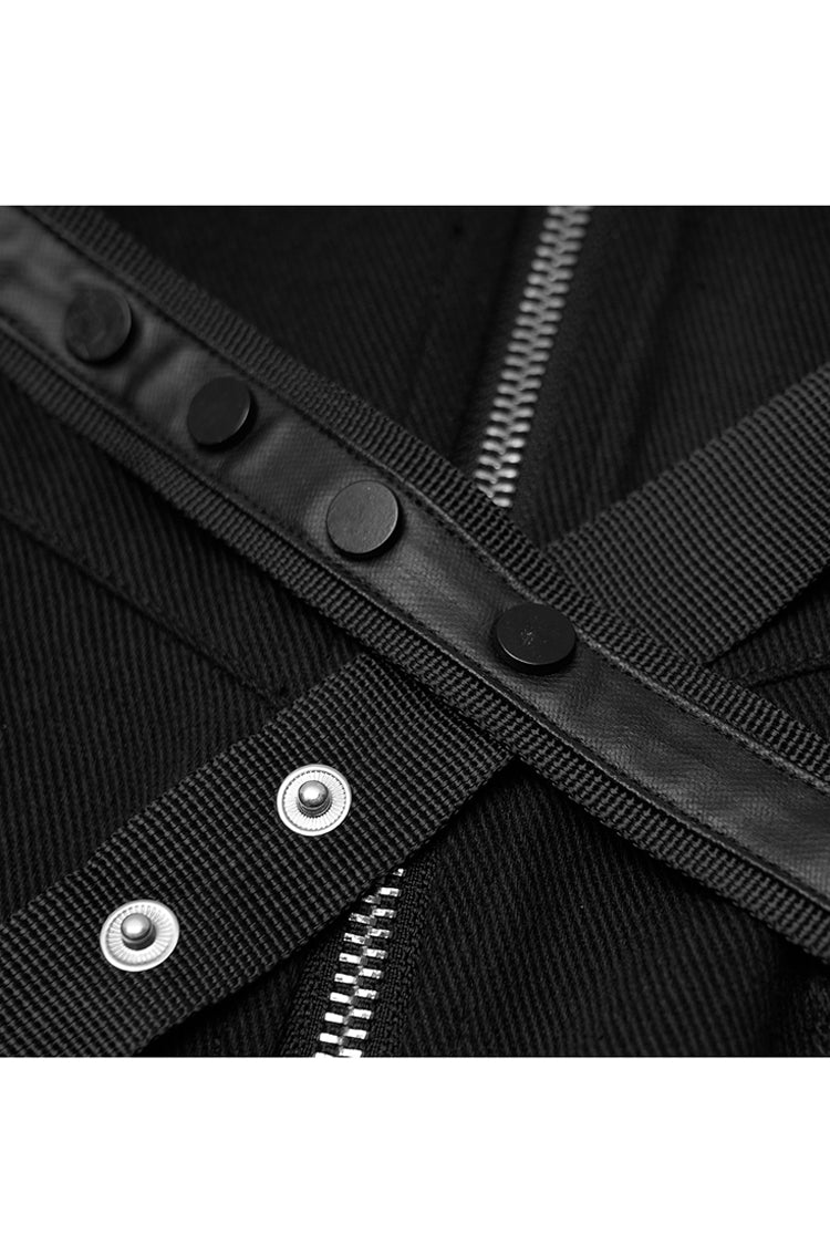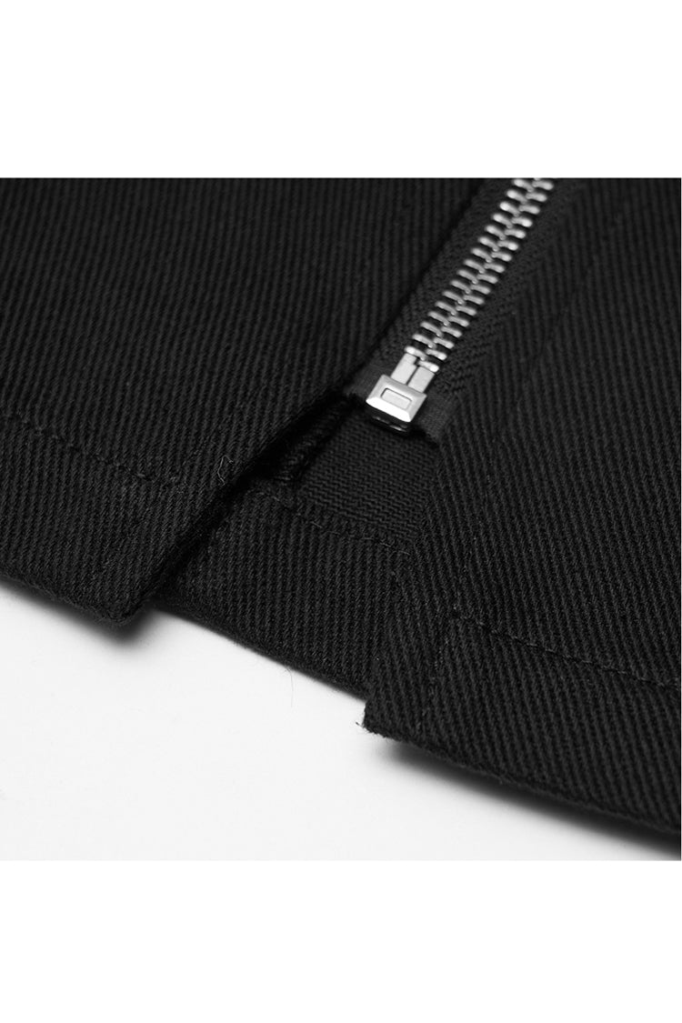 2.イレギュラーウエストデザインで落ち感を演出し、フロントファスナーで着脱も楽ちん。