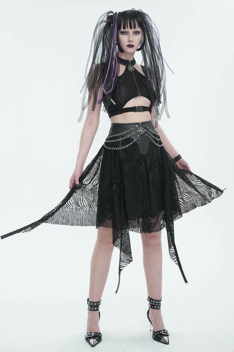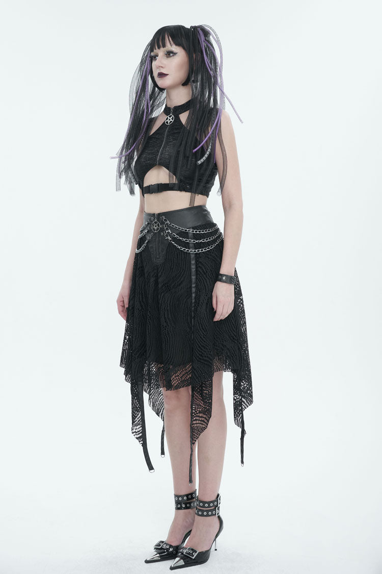 2.ウエストは模造革生地でガードル構造になっており、チェーンは取り外し可能です。