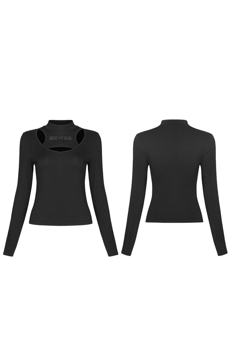 2.スタンドカラーとフェイク2枚のくり抜きネックラインがセクシーさを演出します。
