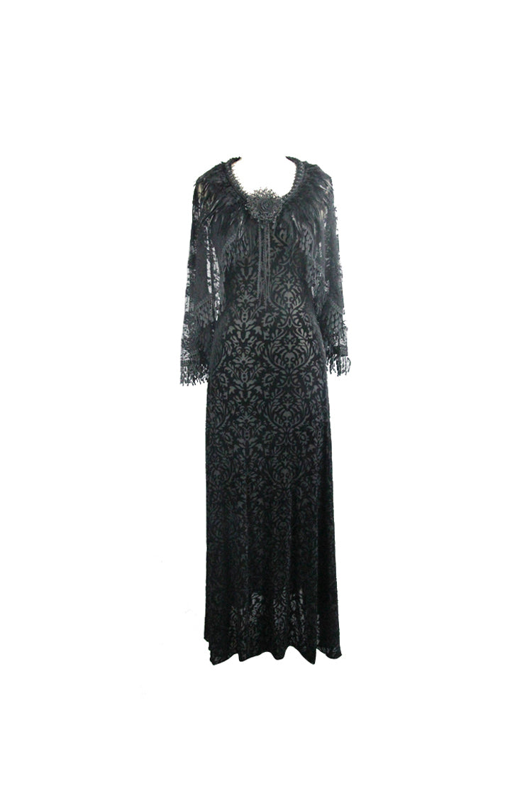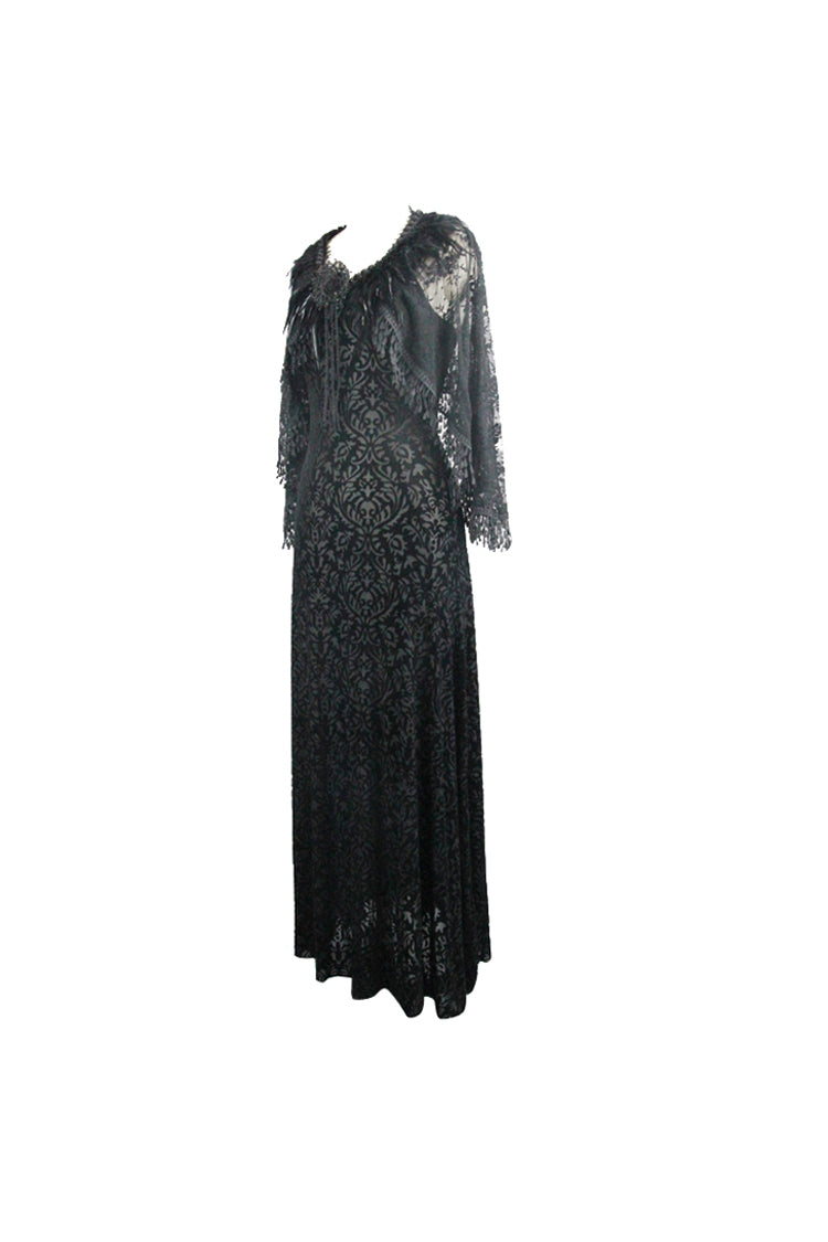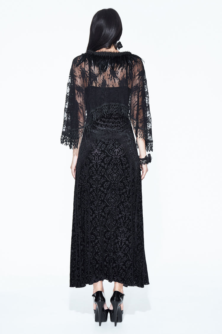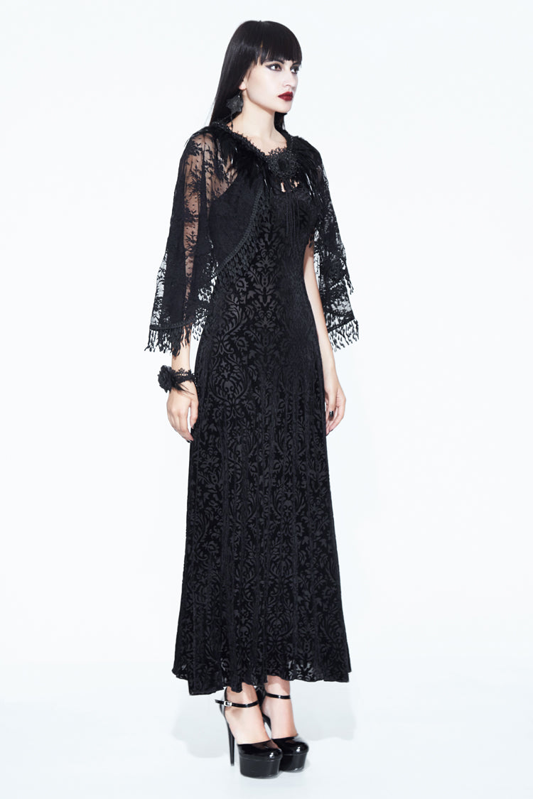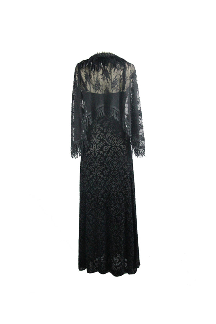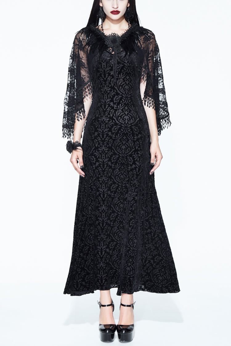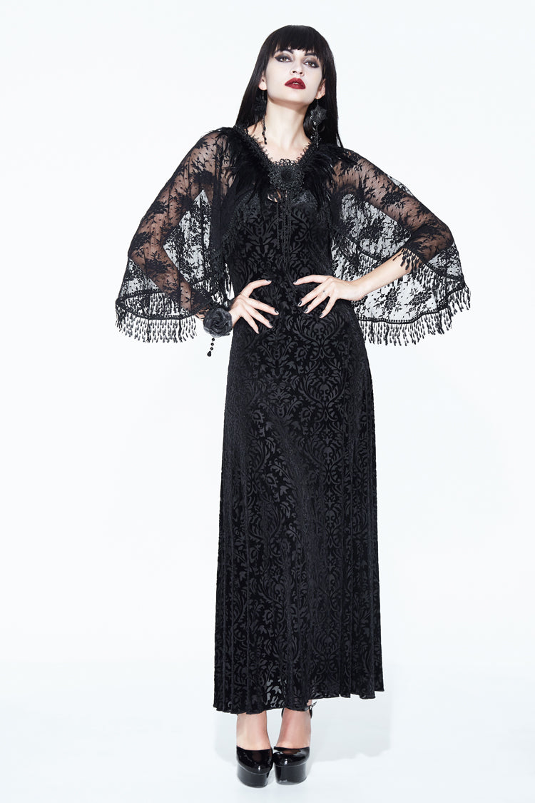 ショールの前中央のブローチは取り外して開けることができます。ショールとドレスは別々にも着用可能です。