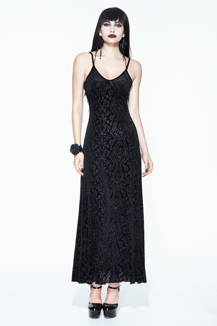 パレスダークパターンの伸縮性ニット生地が全体をスリップドレスにします。