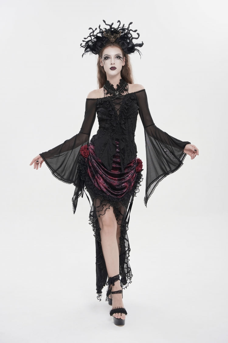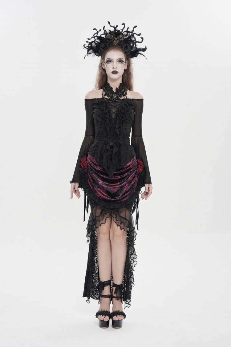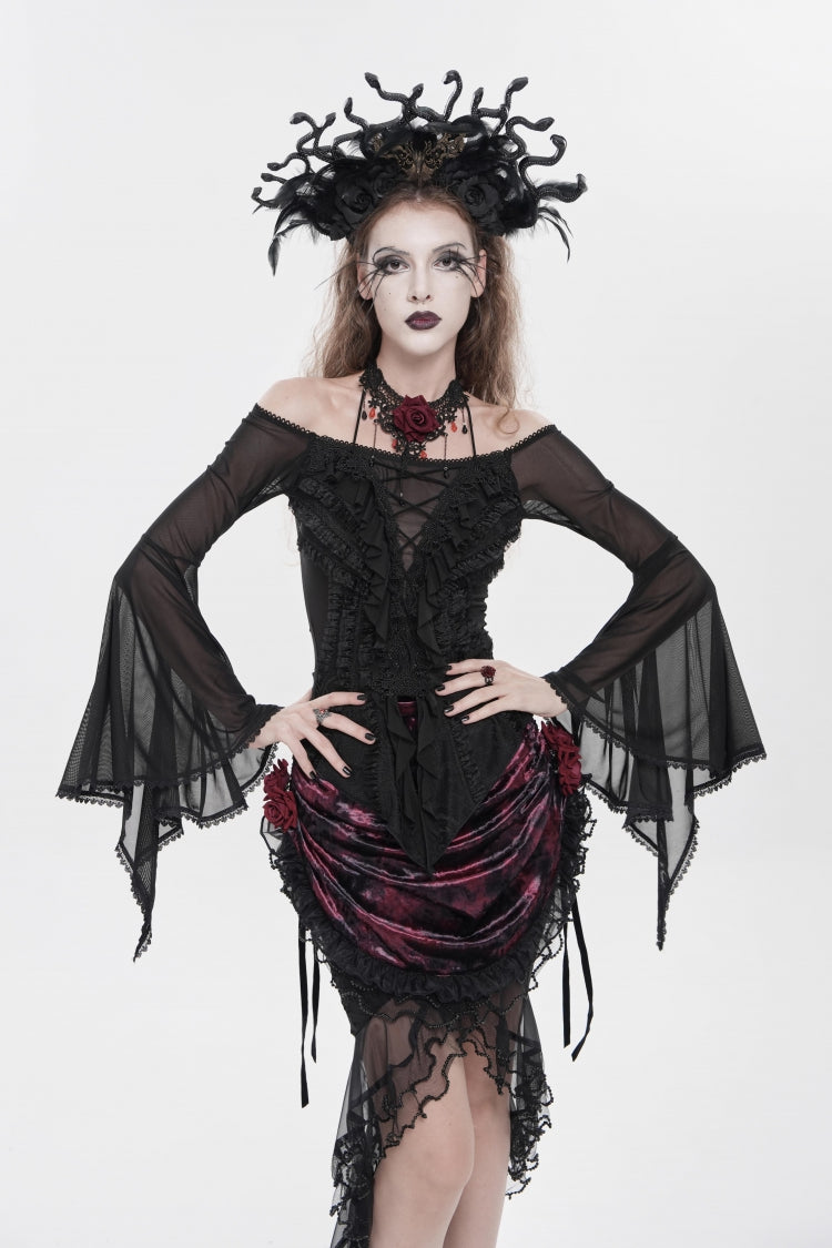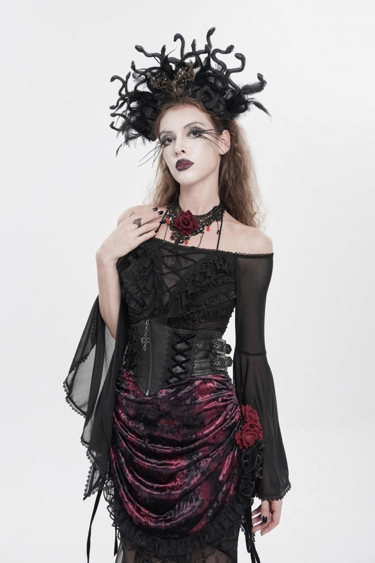 特徴: フリル、刺繍、レースアップ