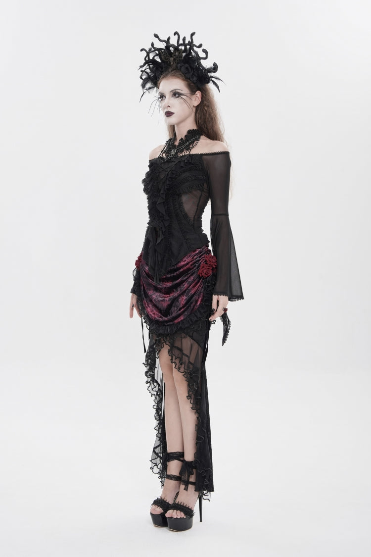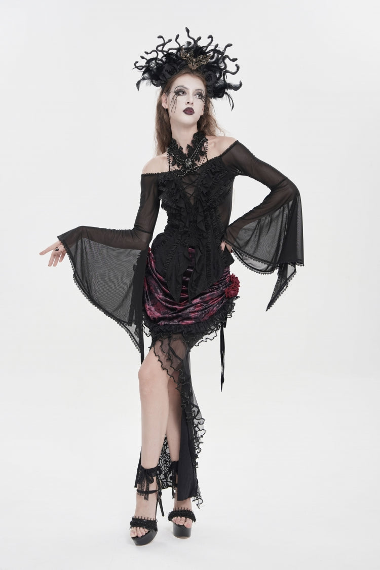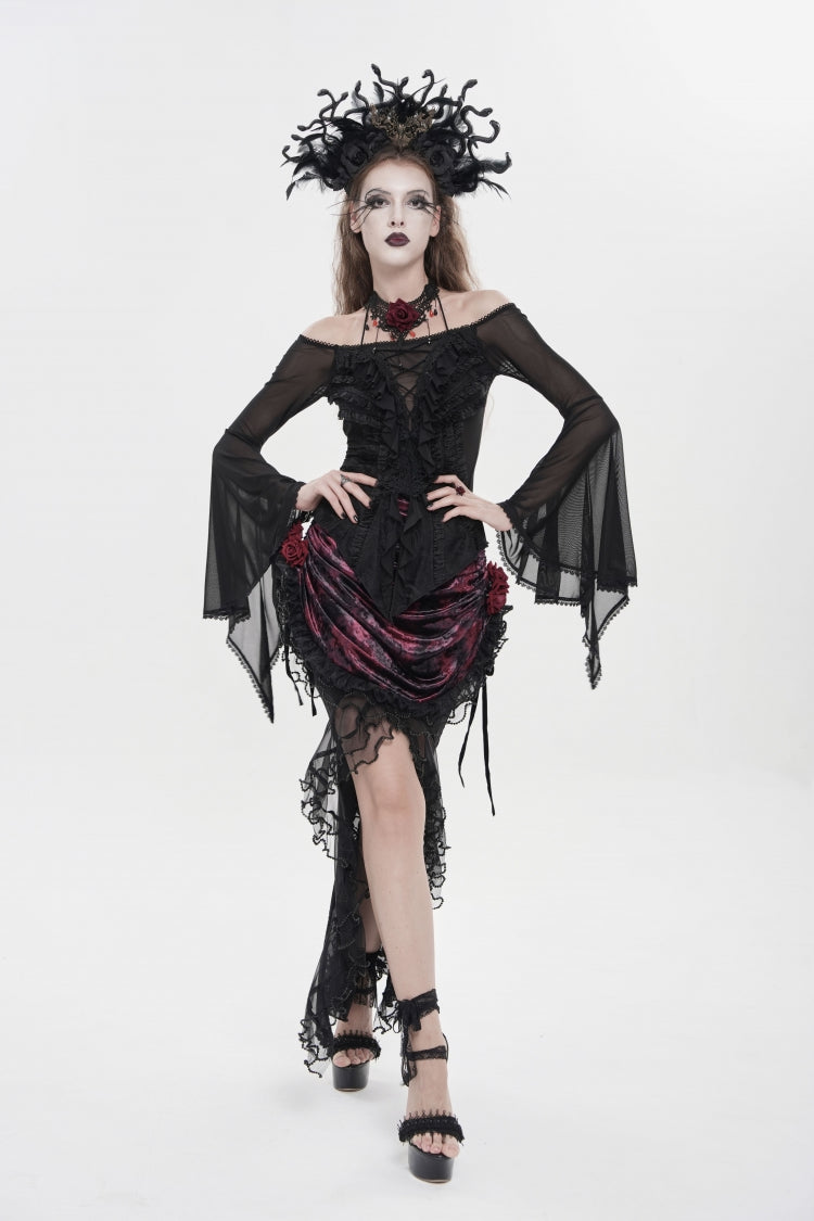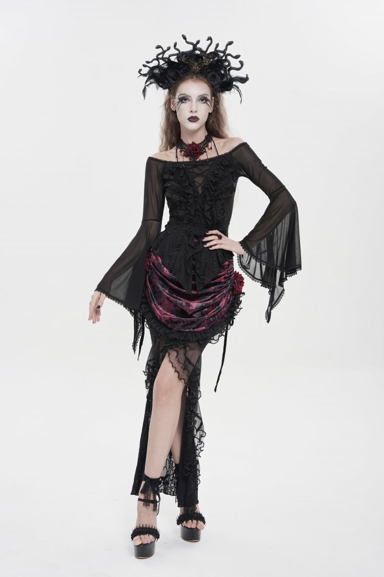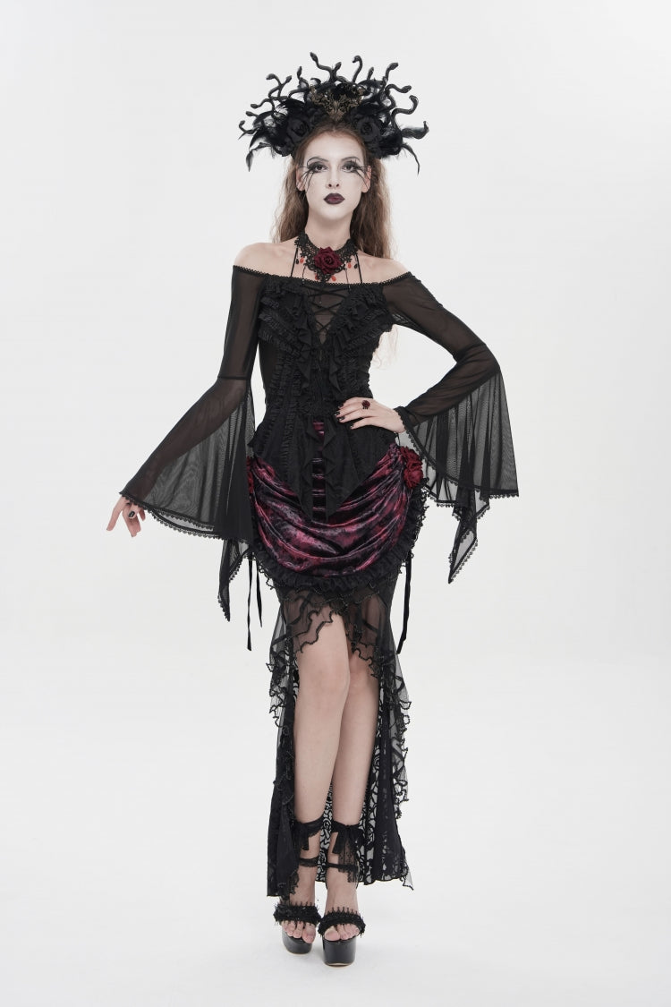 特徴: フリル、刺繍、レースアップ