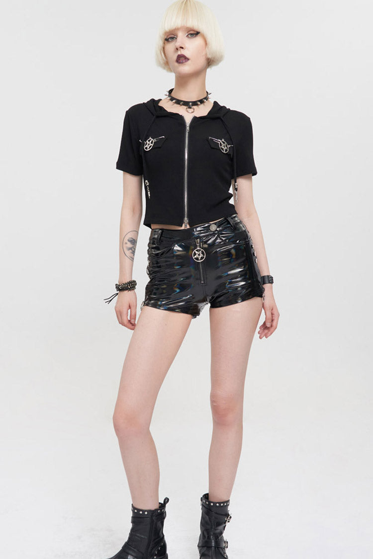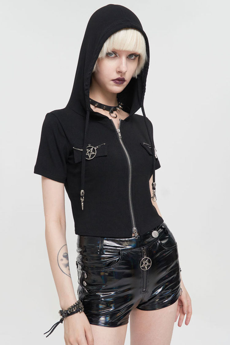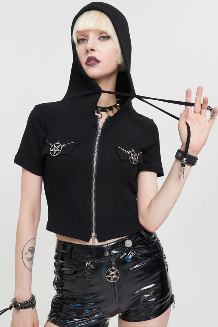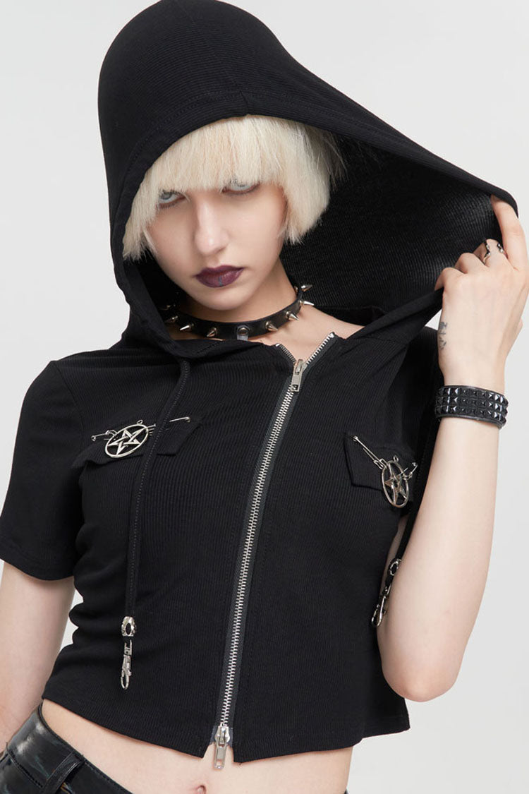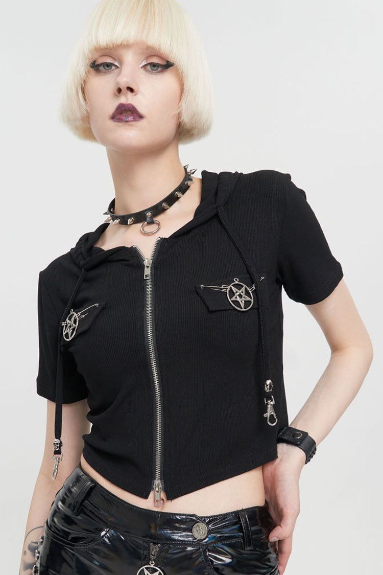 メイン生地は薄手で伸縮性に優れた柔らかな細リブを使用しています。フロント中央の金属ジッパーが開きます。