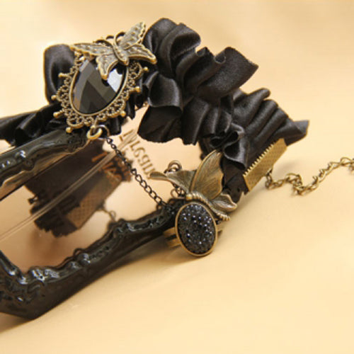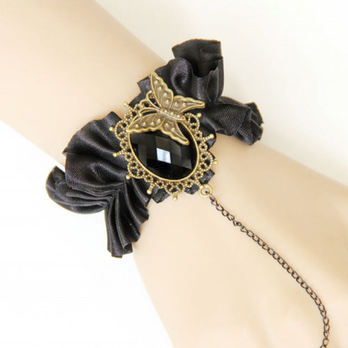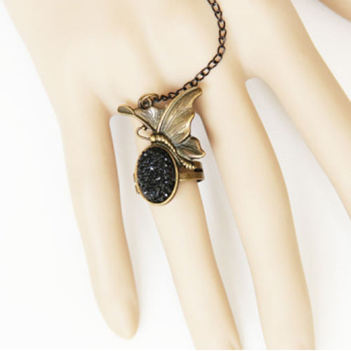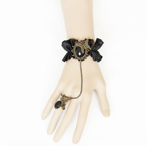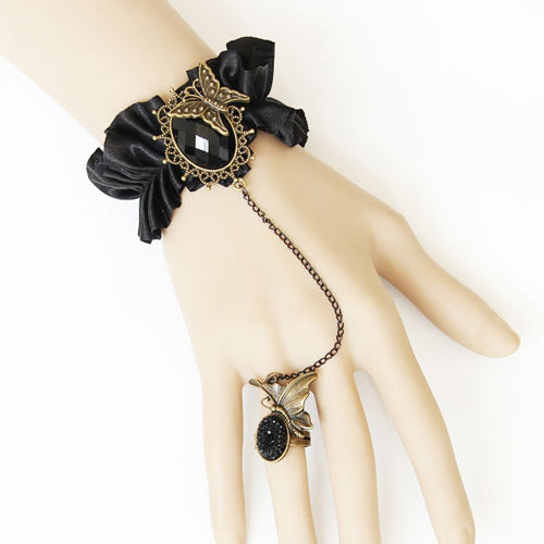 レトロなゴシックファッション黒蝶デザイン女性リングブレスレット