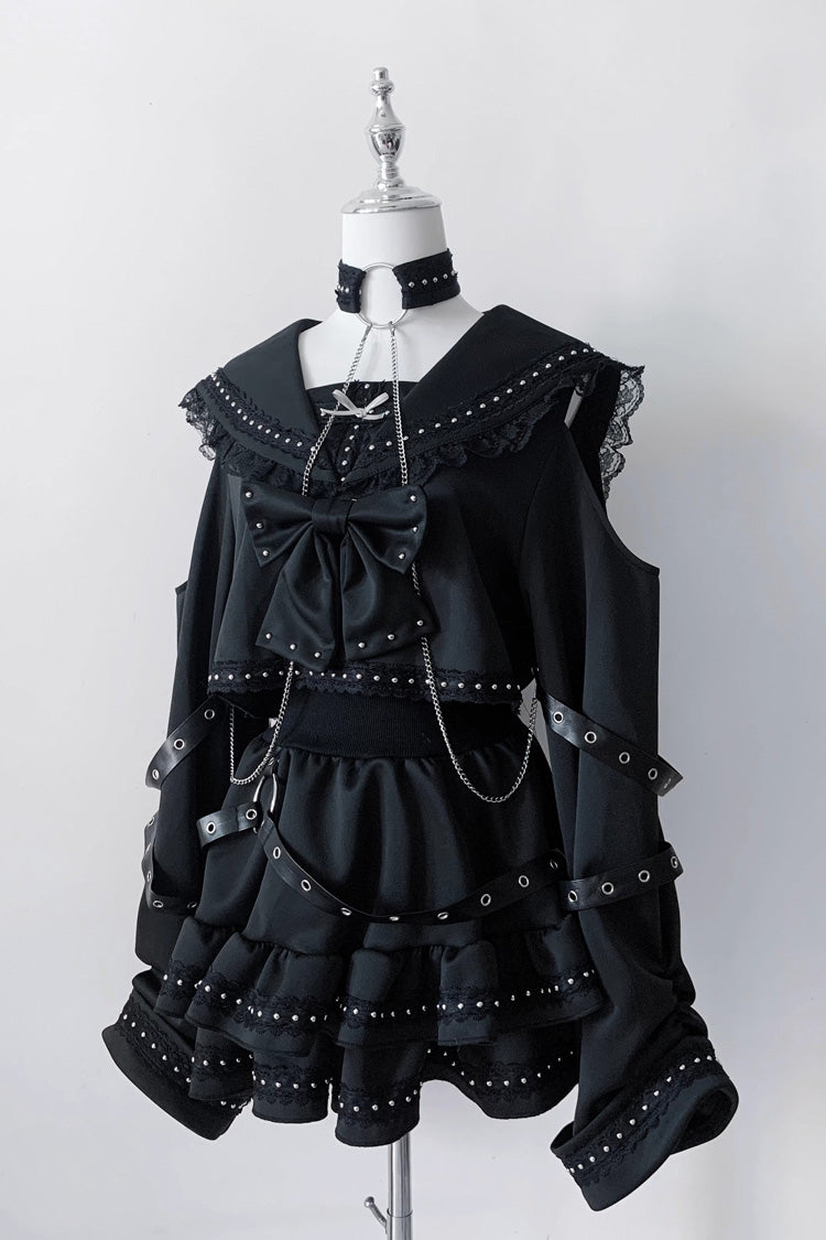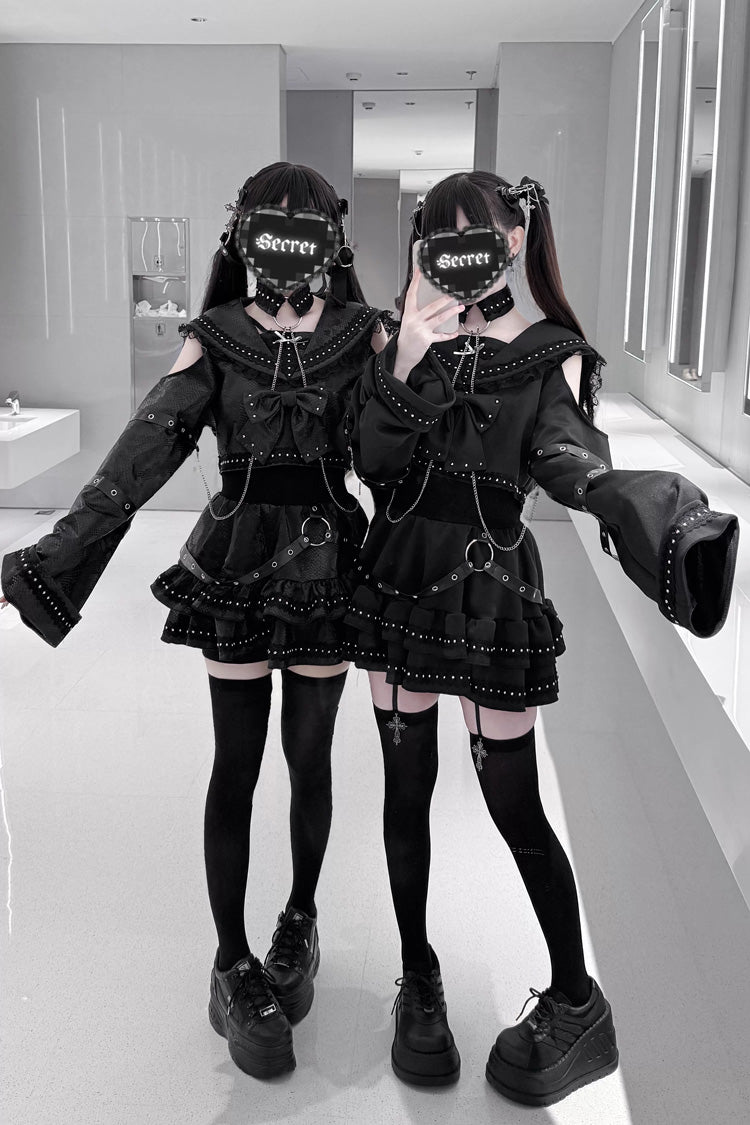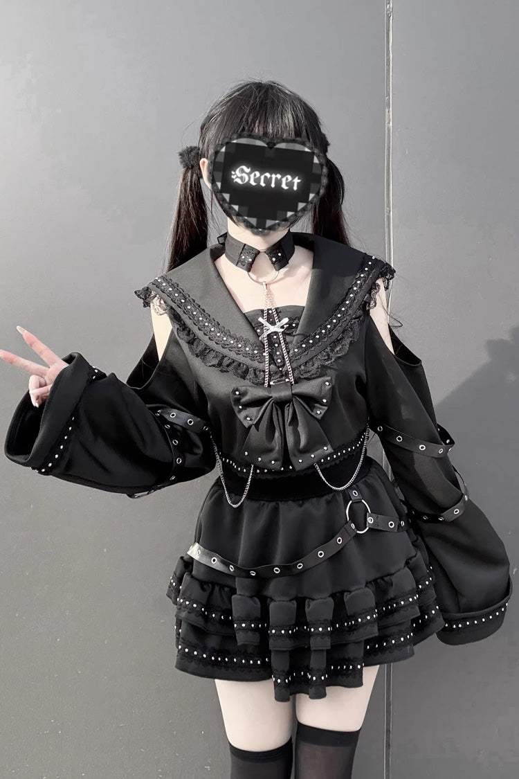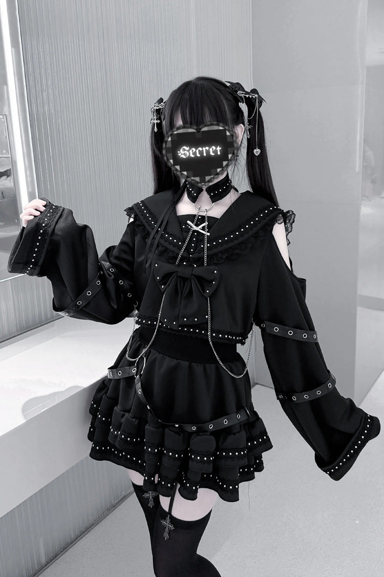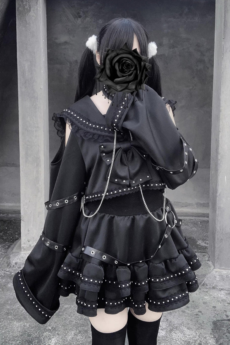 特徴: フリル、リボン、スタッズ付き