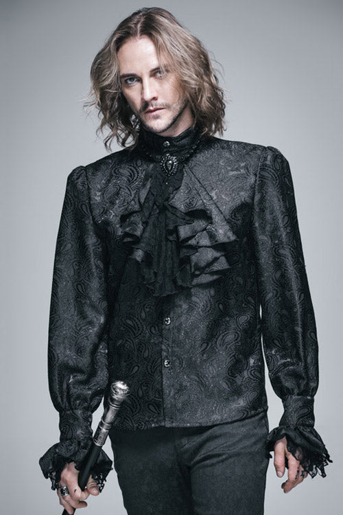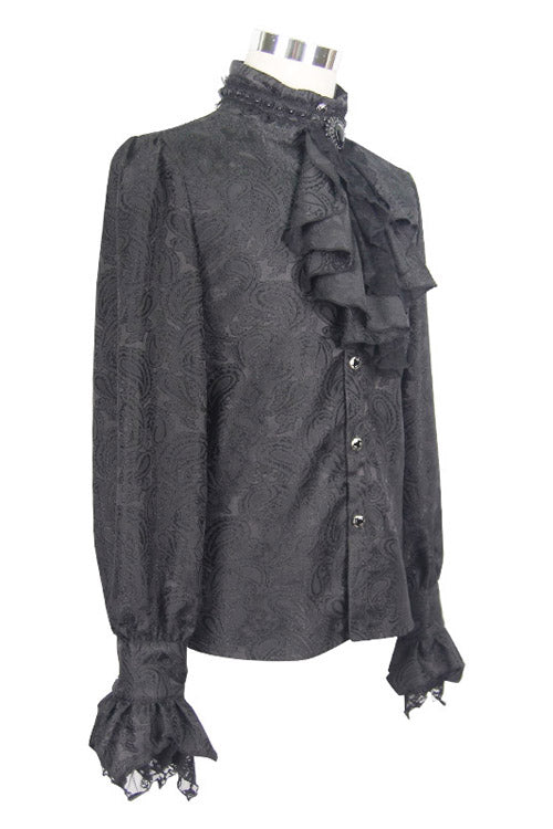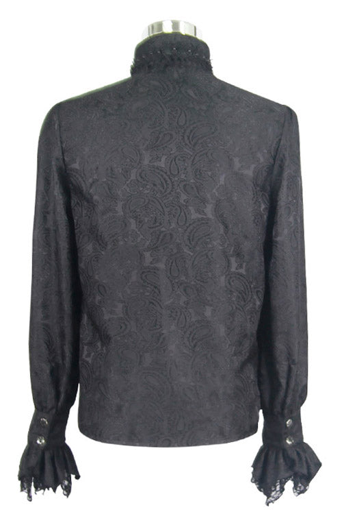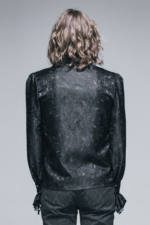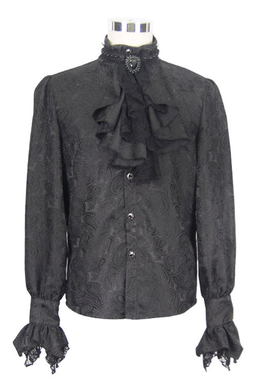 メイン生地にはブラックペイズリージャガードのシャイニング素材を使用し、ブラックローズメッシュのレース生地とマッチしています。蝶ネクタイはビーズ付きの黒の立体レースを使用しており、蝶ネクタイは取り外し可能です。蝶ネクタイのジュエルピンも取り外し可能です。