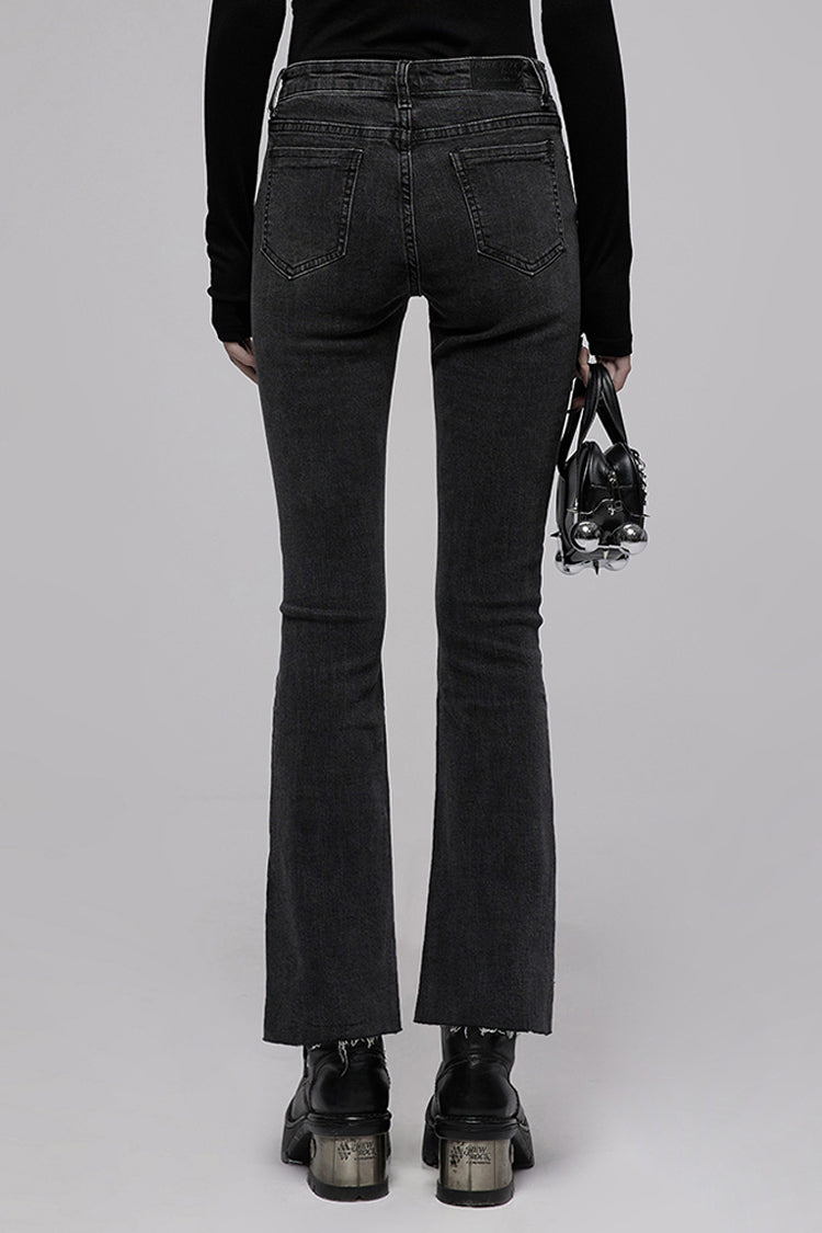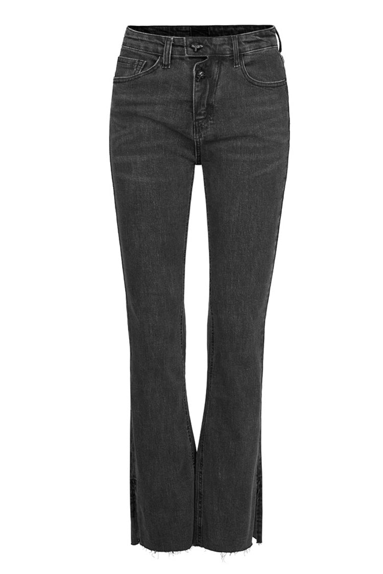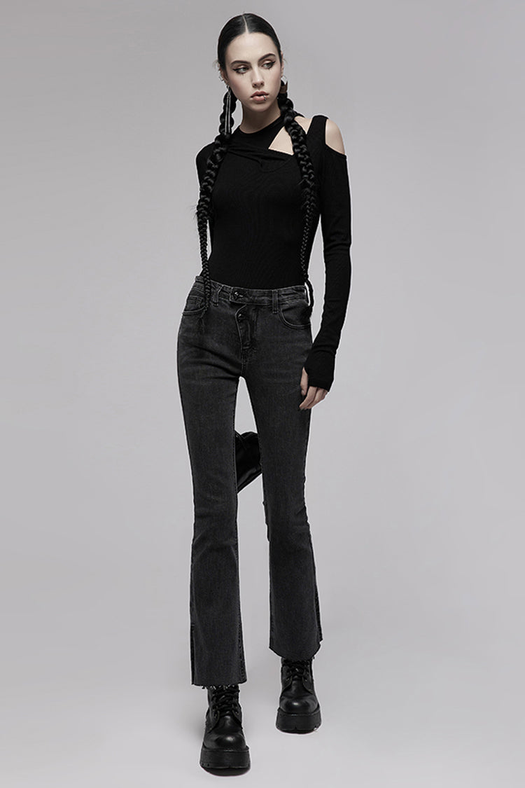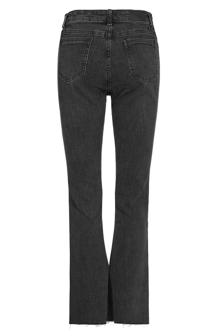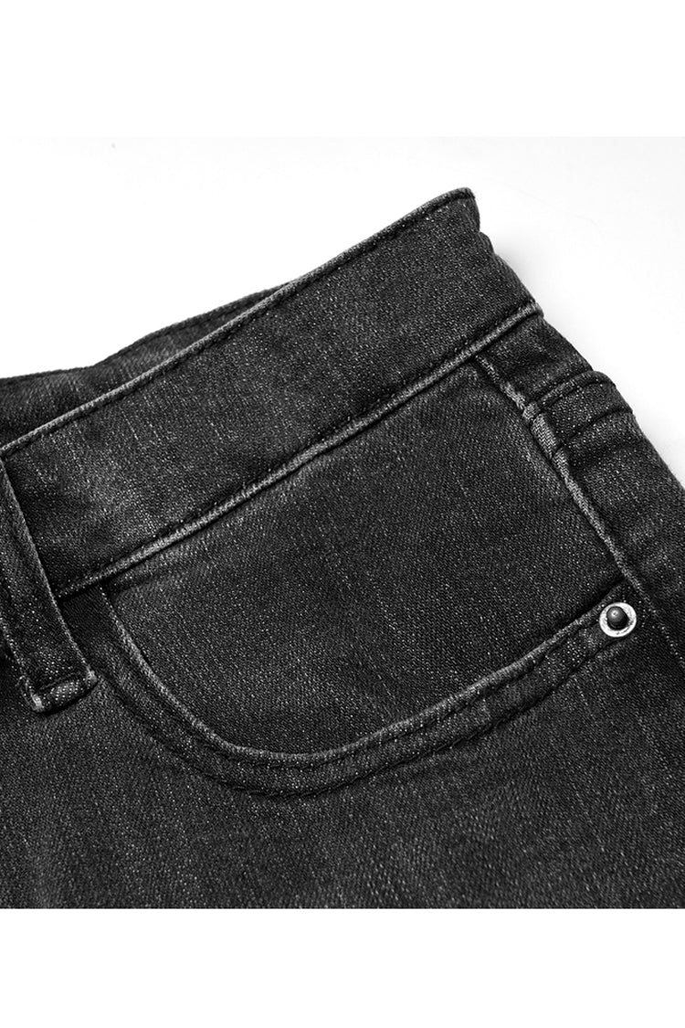 2.ジーンズはダメージ加工が施されており、ウエストのギャザーデザインがヒップラインを修正します。