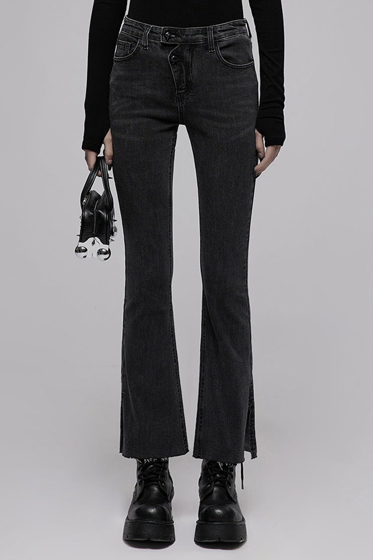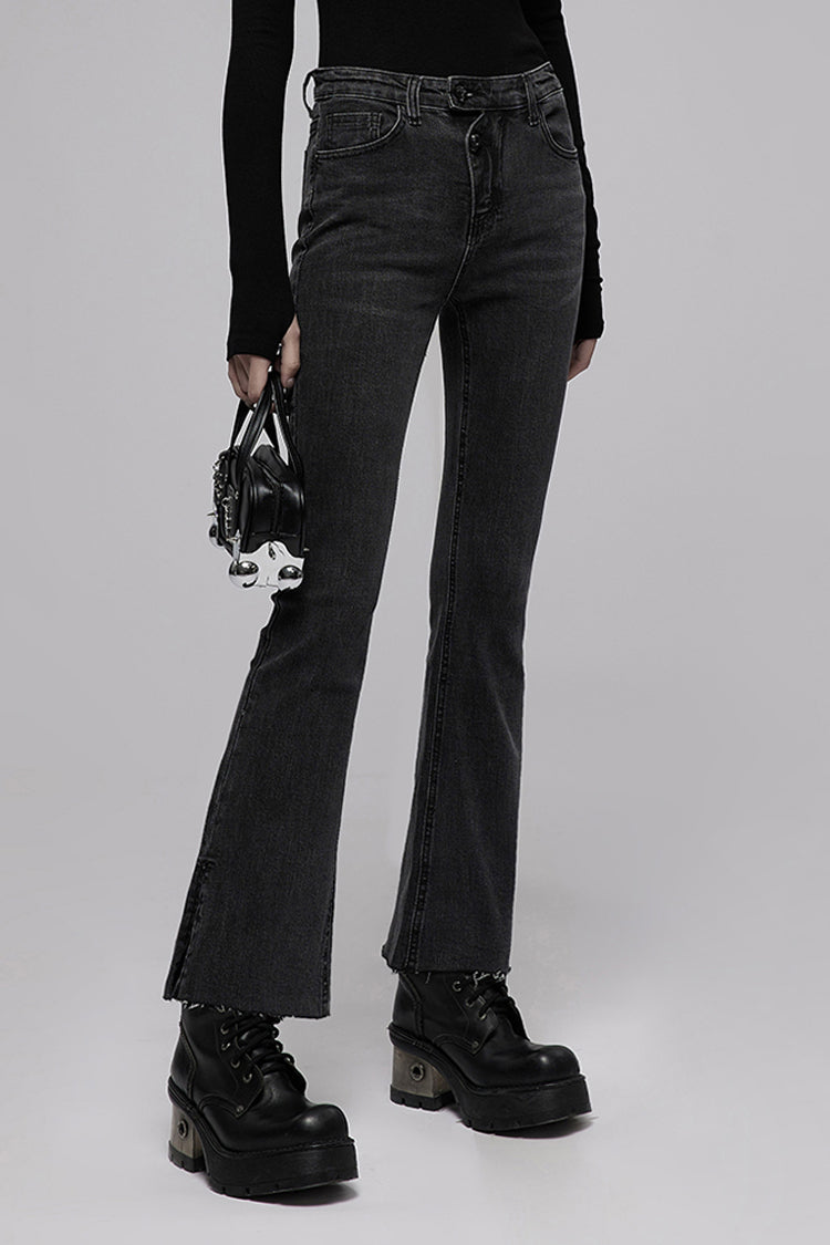 1.脚の形をより良く修正できるミディアムウエストフレアパンツ。