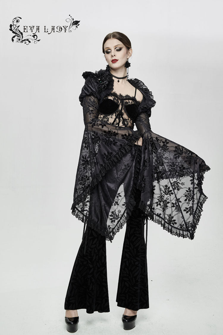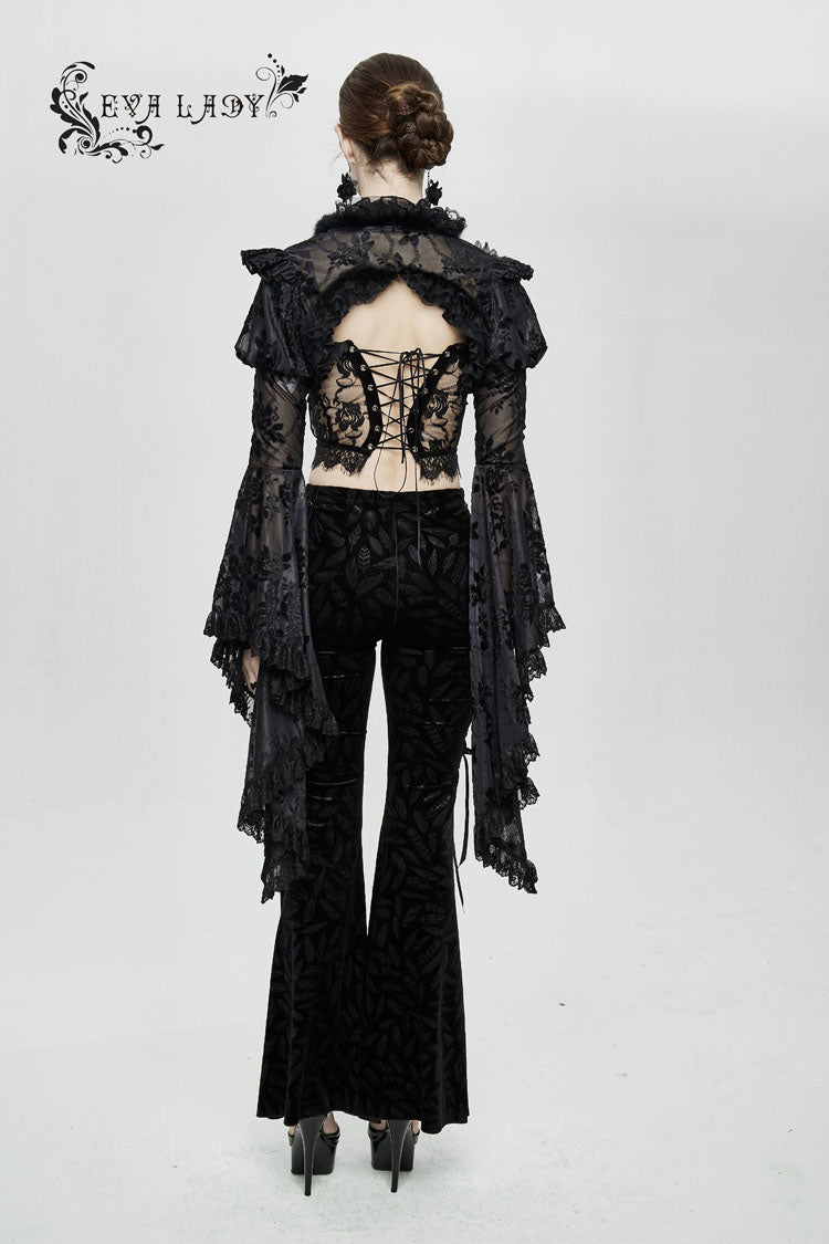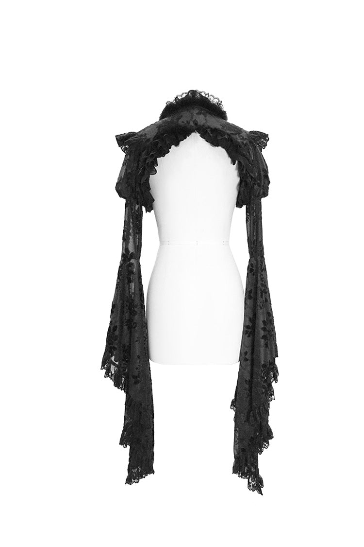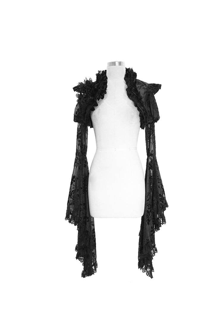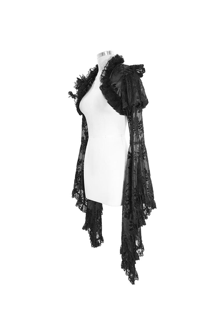 全体に立体的な柄のシャーリング生地を使用し、衿と胸元にラビットヘアレースをあしらいました。