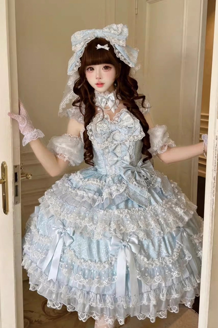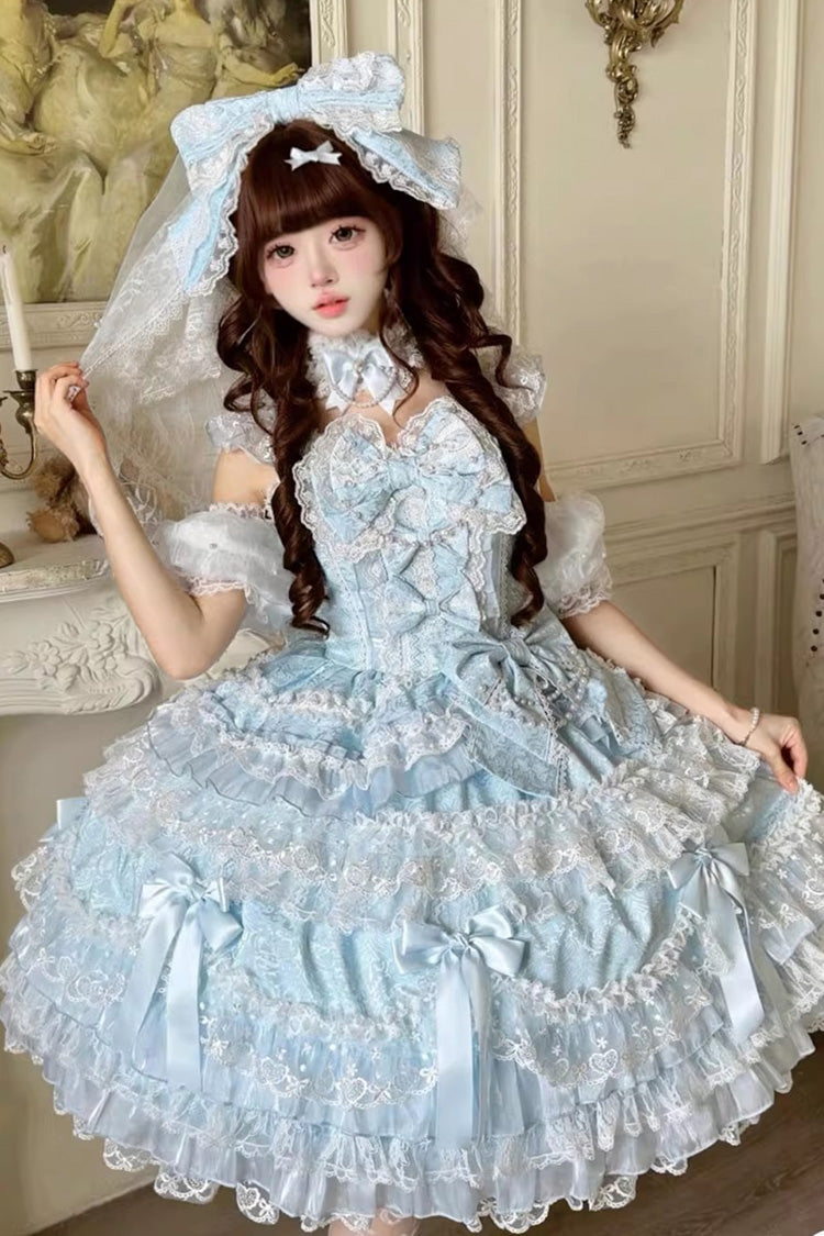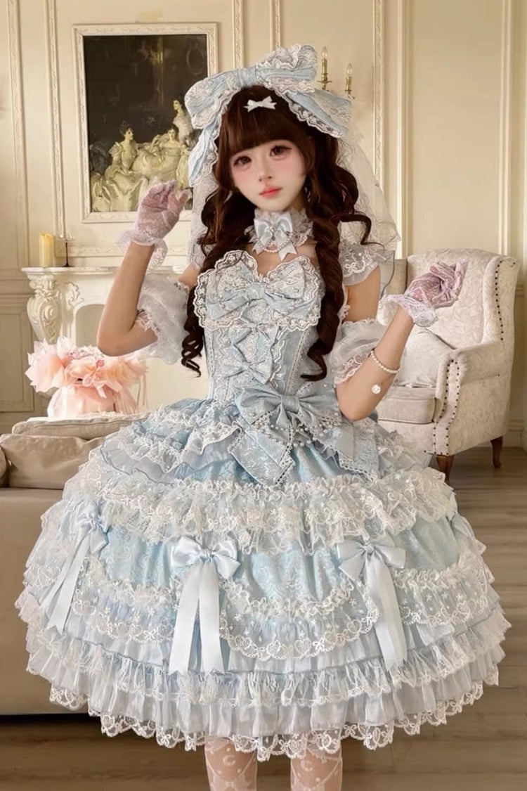 Feature: Multi-Layered, Ruffled, Bow, Lace, Pearl-Decorated