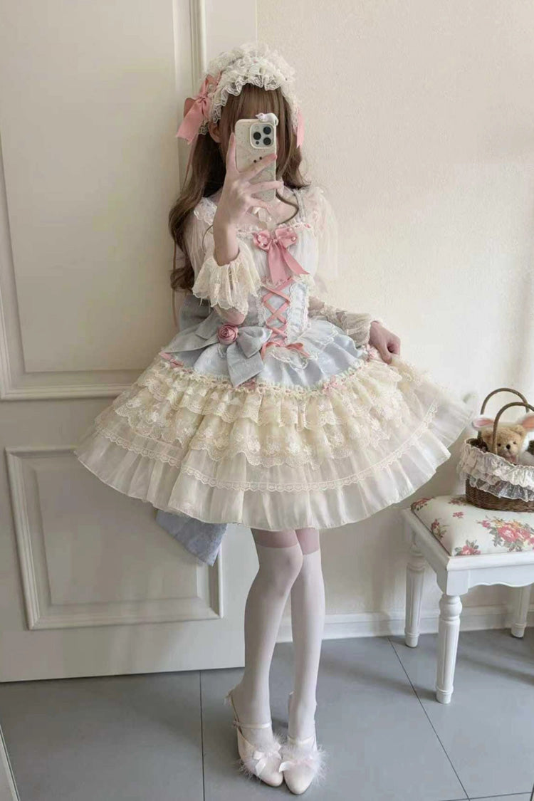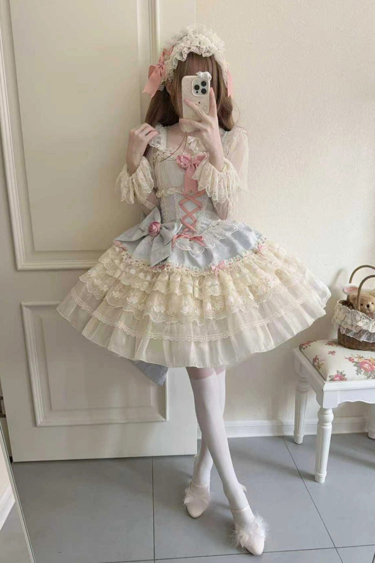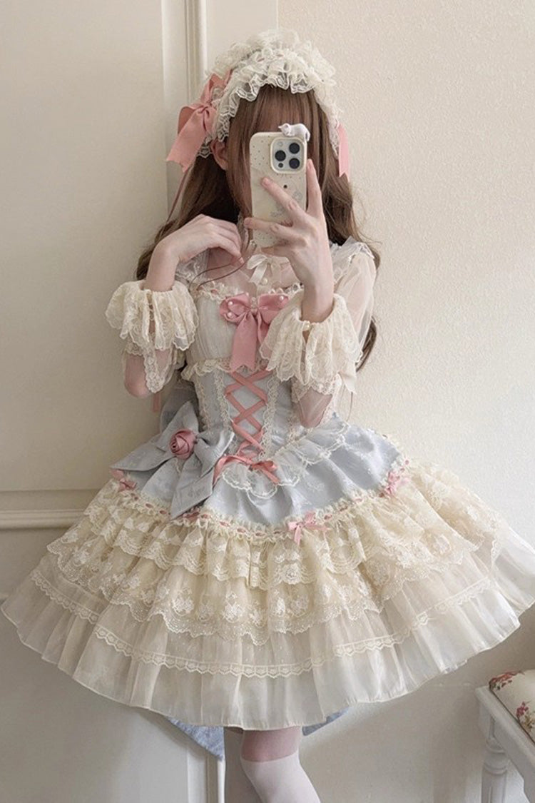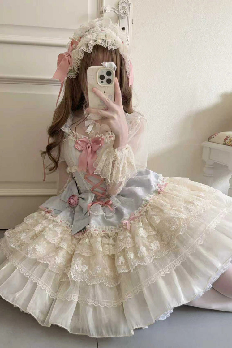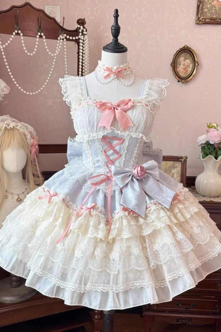 特徴: マルチレイヤー、リボン結び、レース、レースアップ、パール