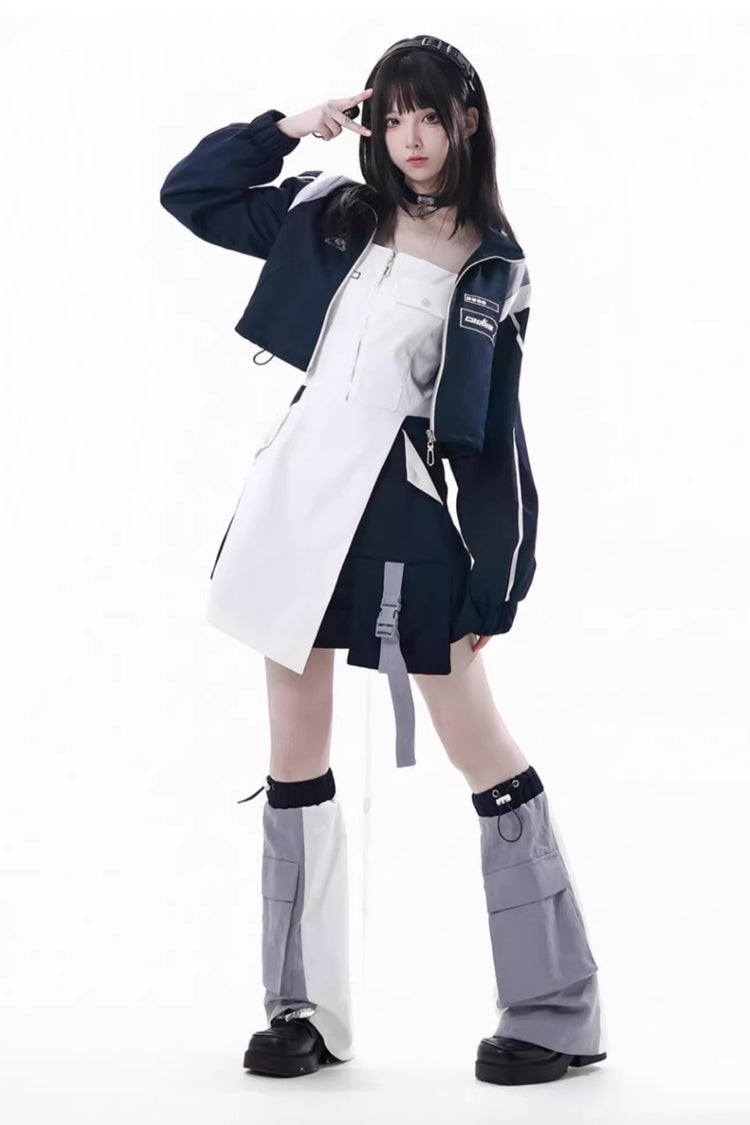 Full Set Includes: Short Coat + Dress + Leg Warmers